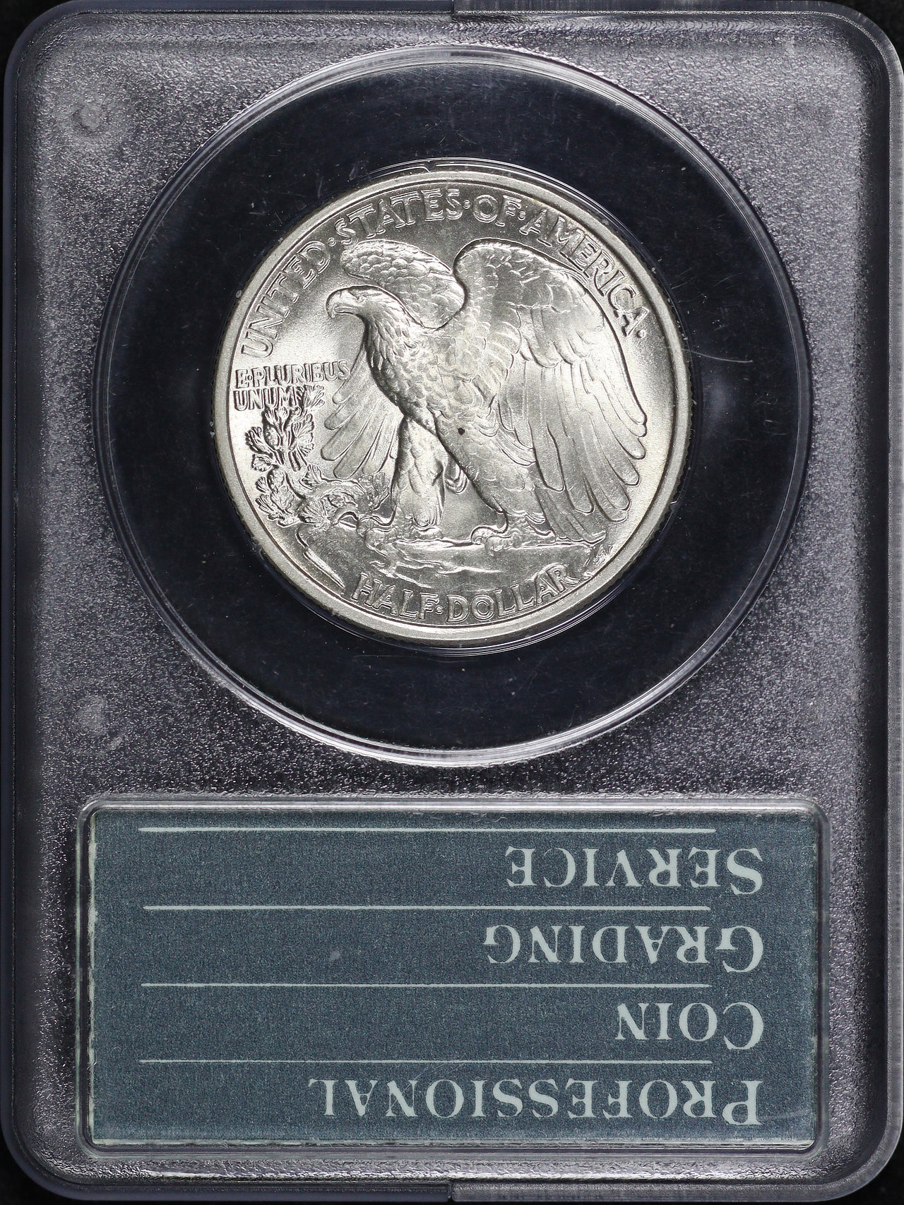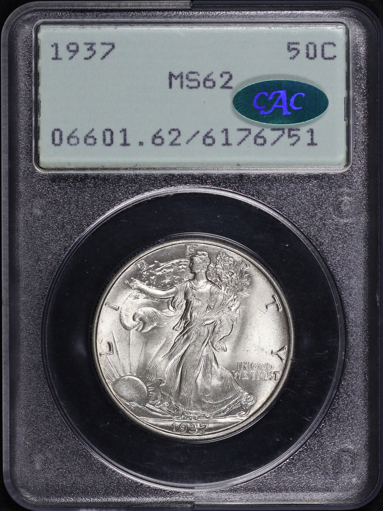 1937 Walking Liberty Half Dollar PCGS MS-62 CAC Old Green Rattler Holder designed by Adolph Alexander Weinman.