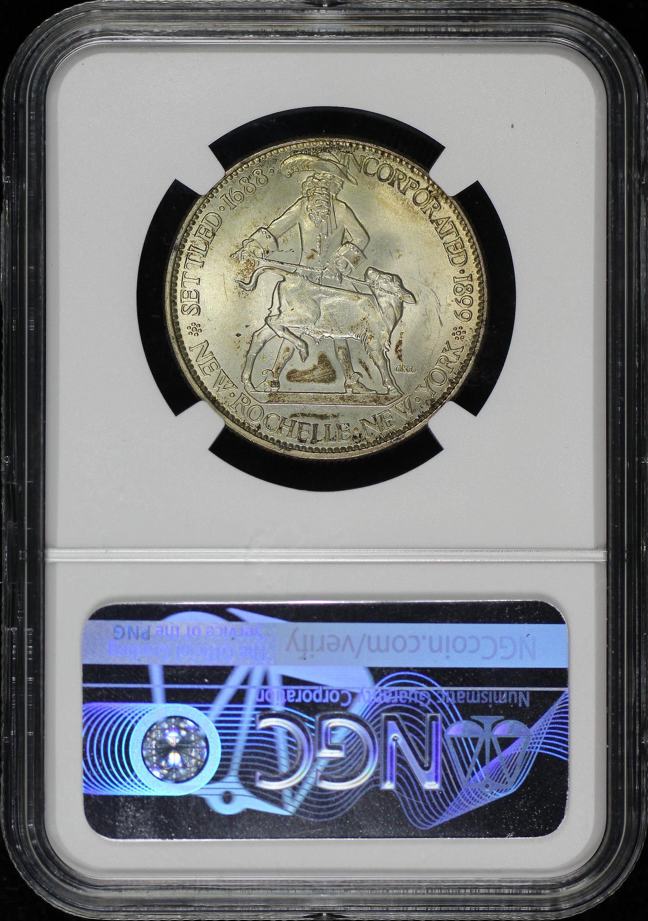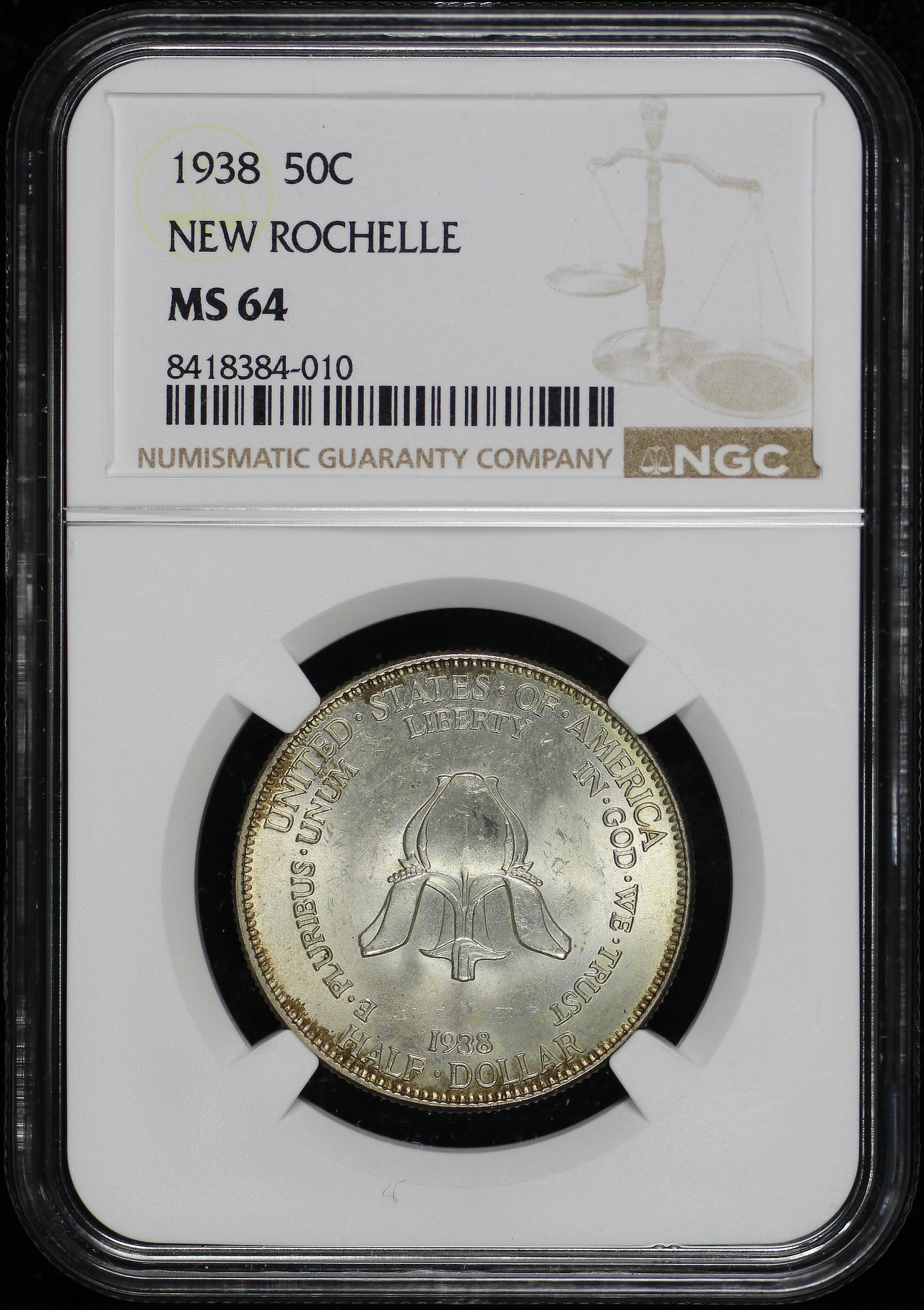 1938 50C New Rochelle Silver Commemorative NGC MS-64.