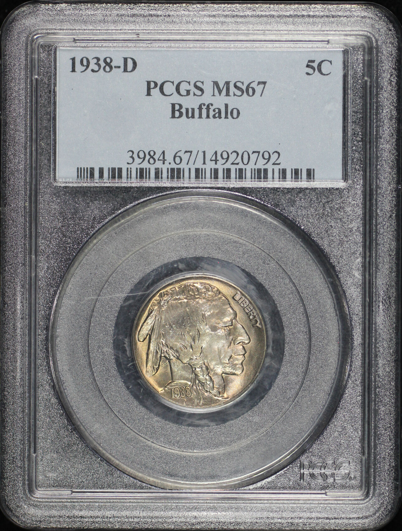 1938-D Buffalo Nickel PCGS MS-67 designed by James Earle Fraser.