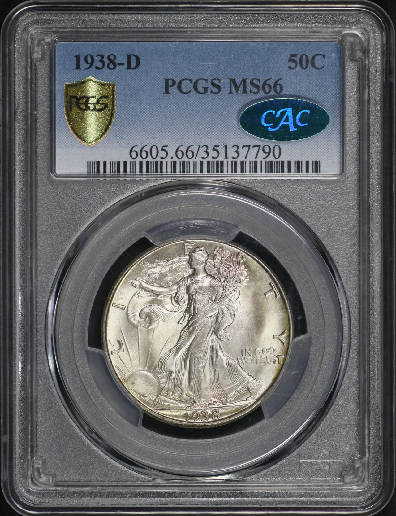 1938-D Walking Liberty Half Dollar PCGS MS-66 CAC designed by Adolph Alexander Weinman.