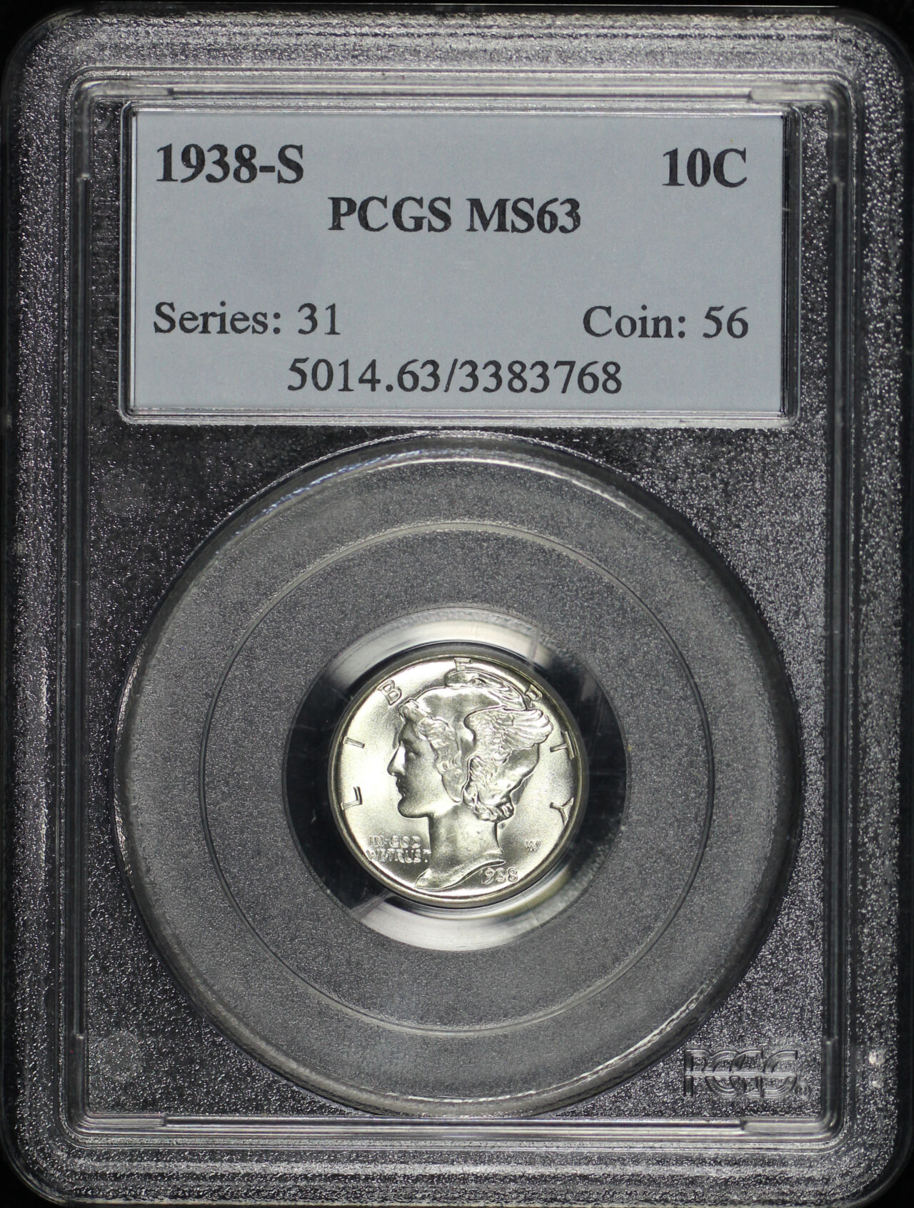 1938-S Mercury Dime PCGS MS-63 designed by Adolph Alexander Weinman.