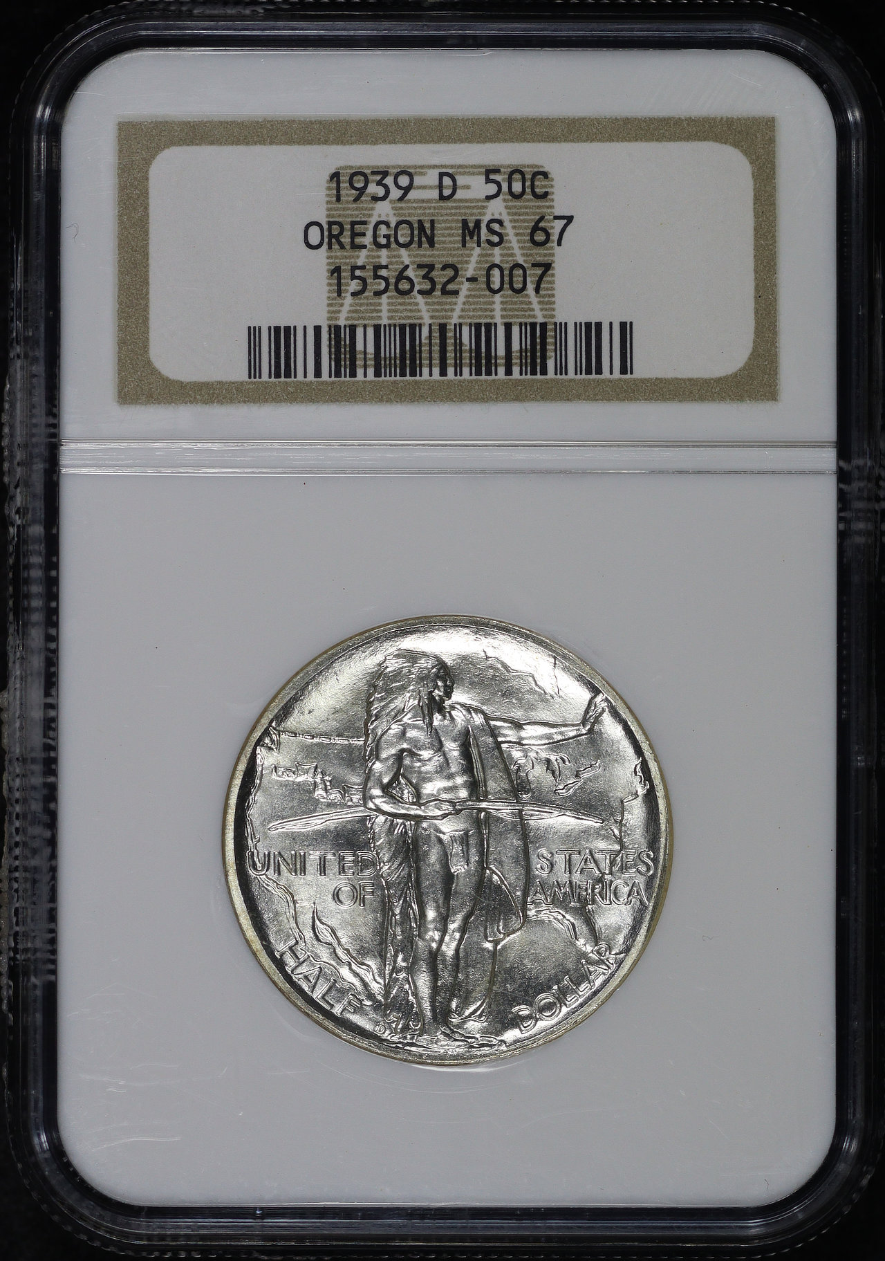 1939-D 50C Oregon Silver Commemorative NGC MS-67.
