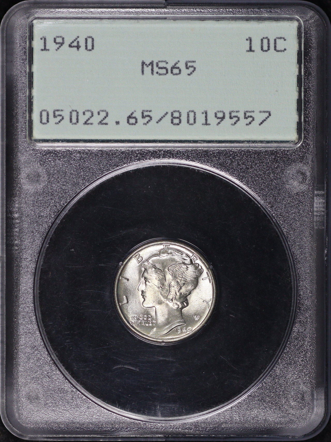 1940 Mercury Dime PCGS MS-65 Old Green Rattler Holder