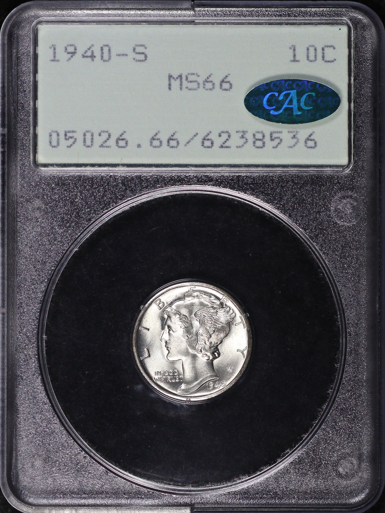 1940-S Mercury Dime PCGS MS-66 CAC Old Green Rattler Holder