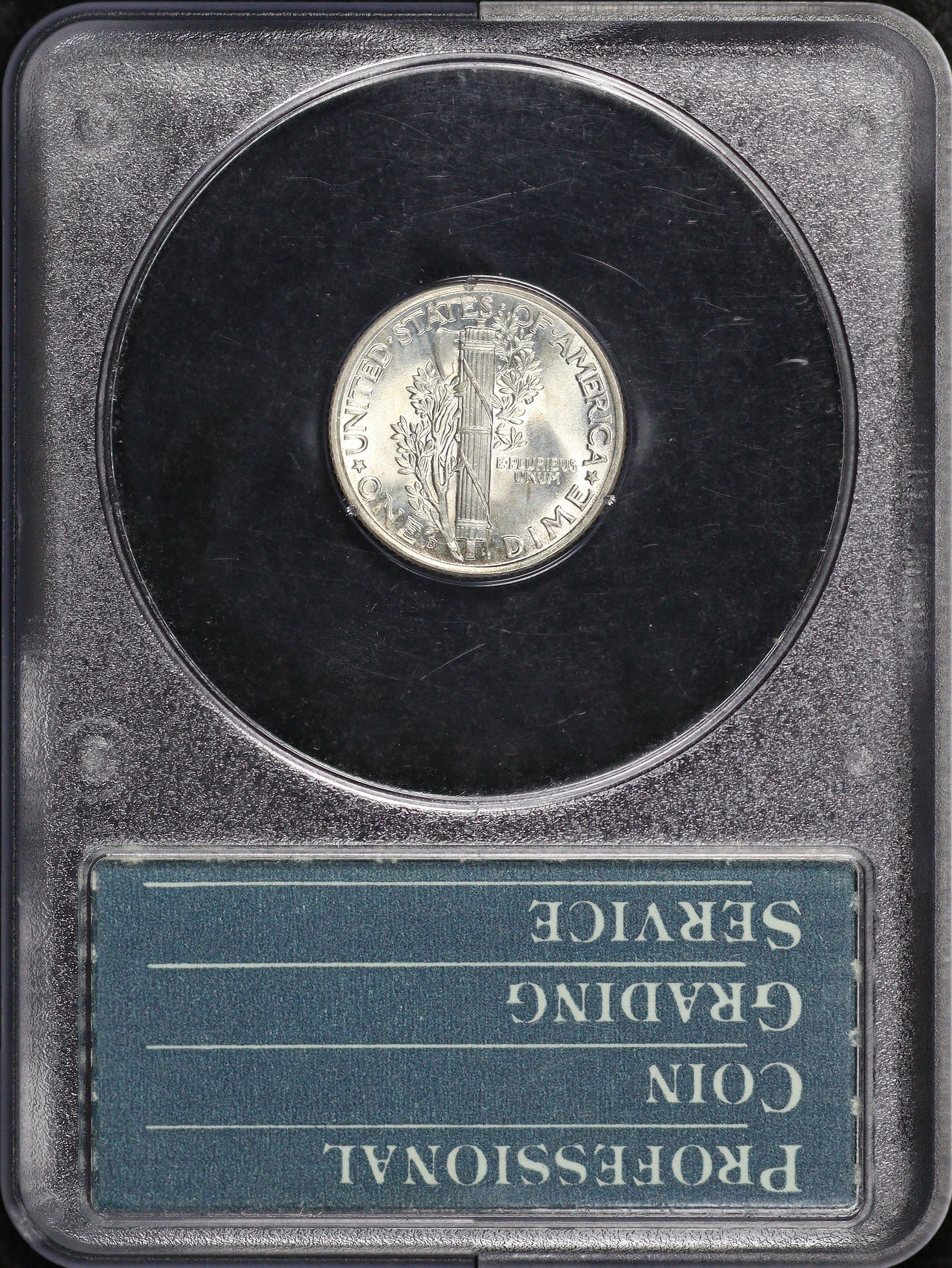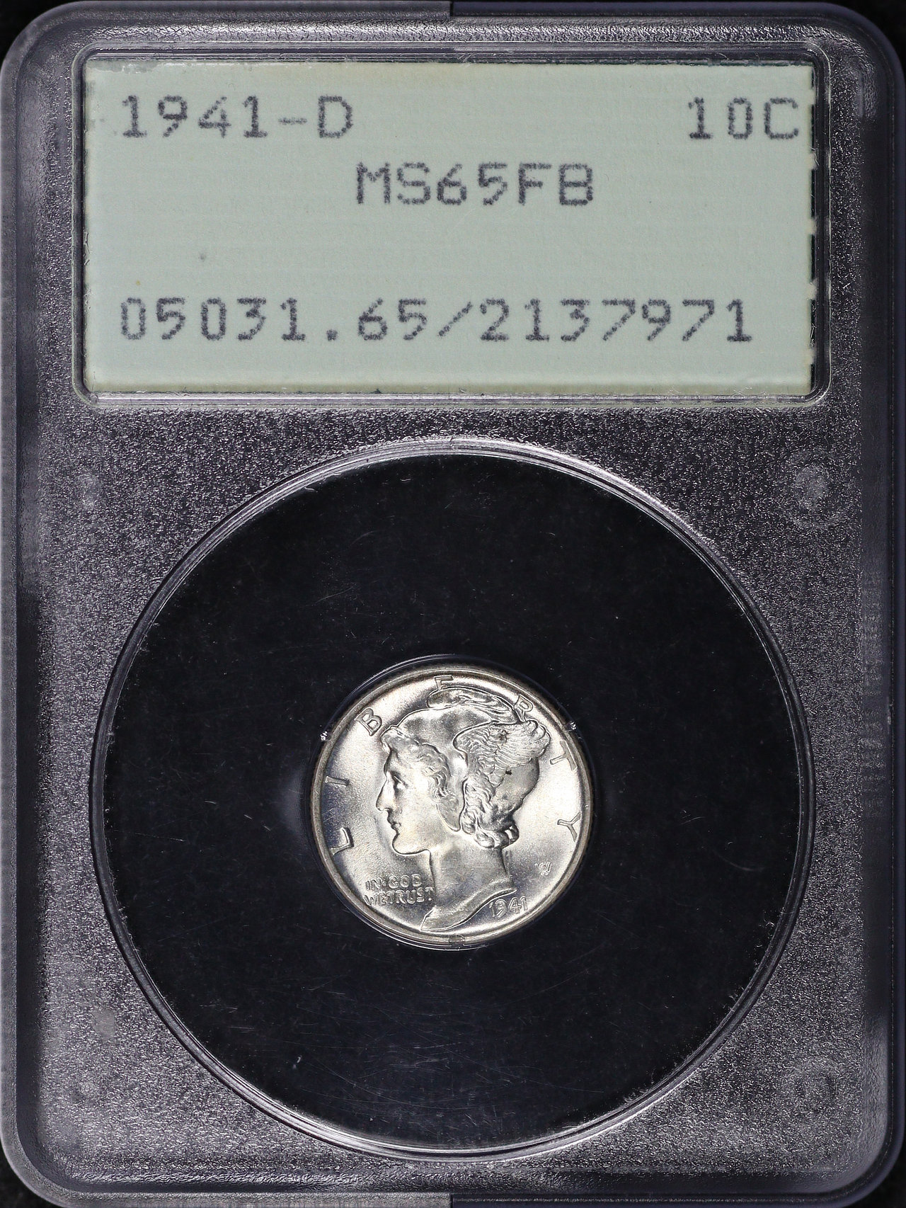 1941-D Mercury Dime PCGS MS-65 FB Old Green Rattler Holder designed by Adolph Alexander Weinman.