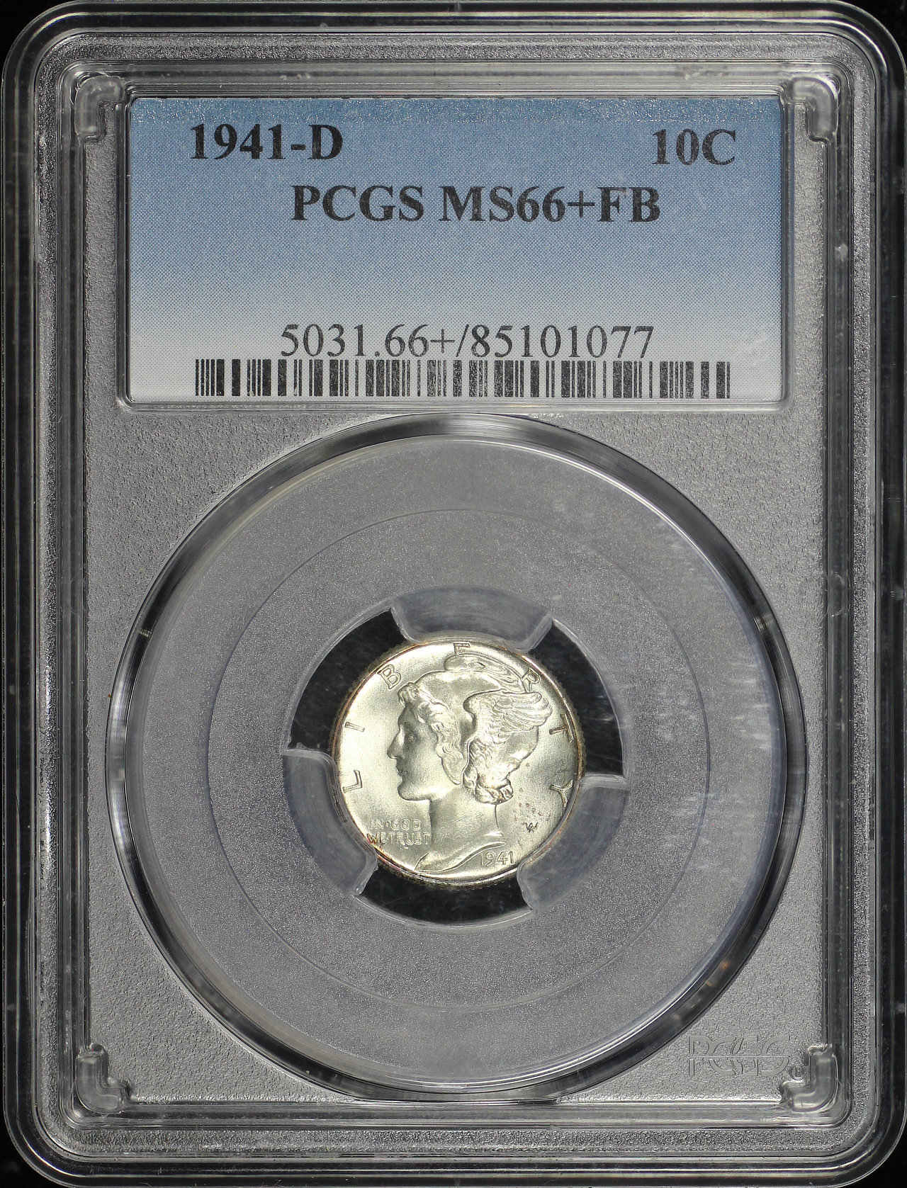 1941-D Mercury Dime PCGS MS-66+ FB designed by Adolph Alexander Weinman.