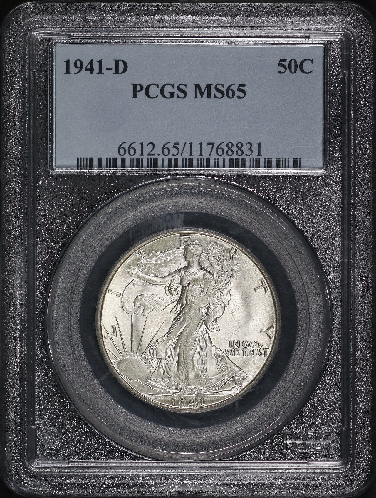 1941-D Walking Liberty Half Dollar PCGS MS-65 designed by Adolph Alexander Weinman.