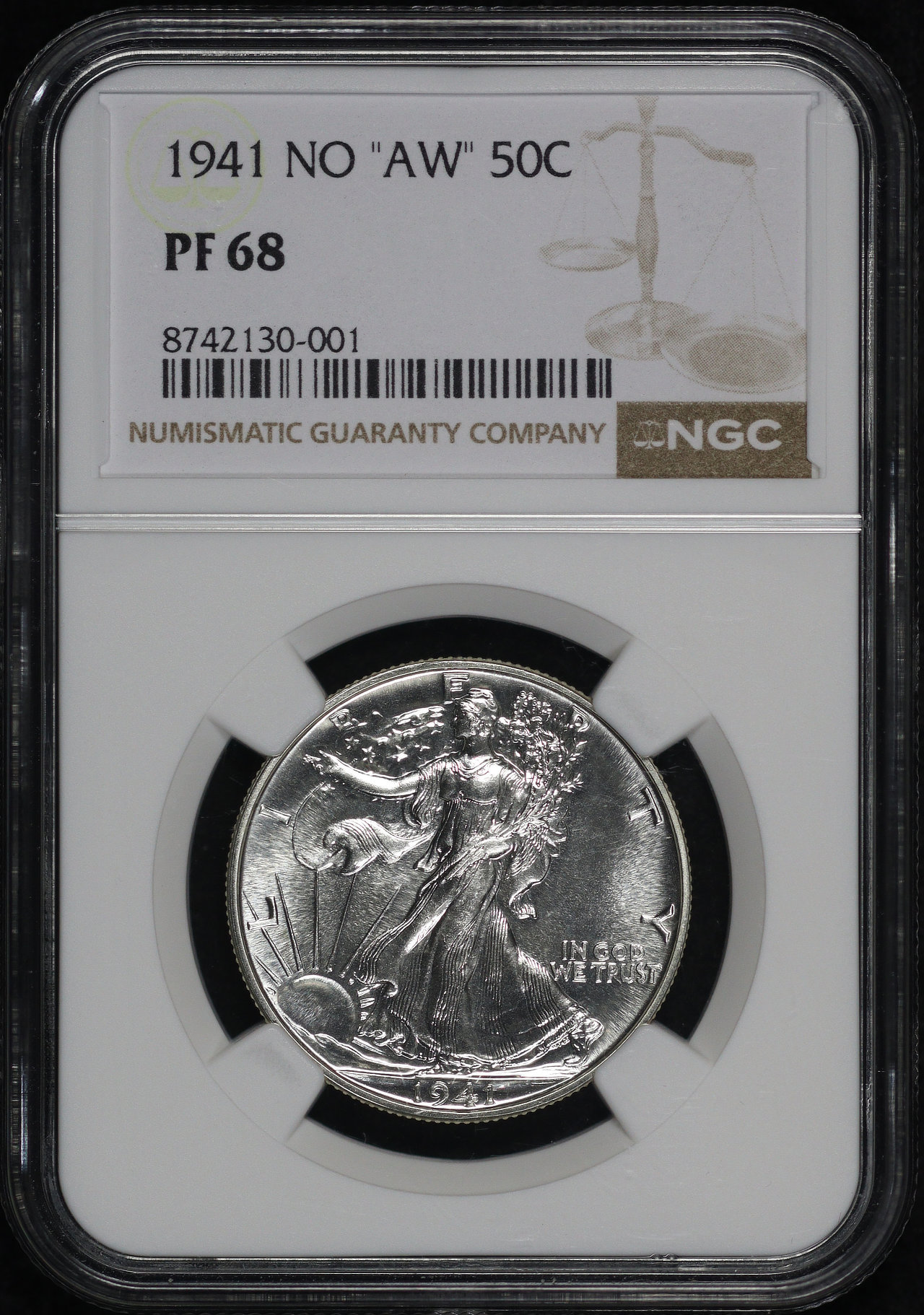 1941 No “AW” Walking Liberty Half Dollar NGC PF-68