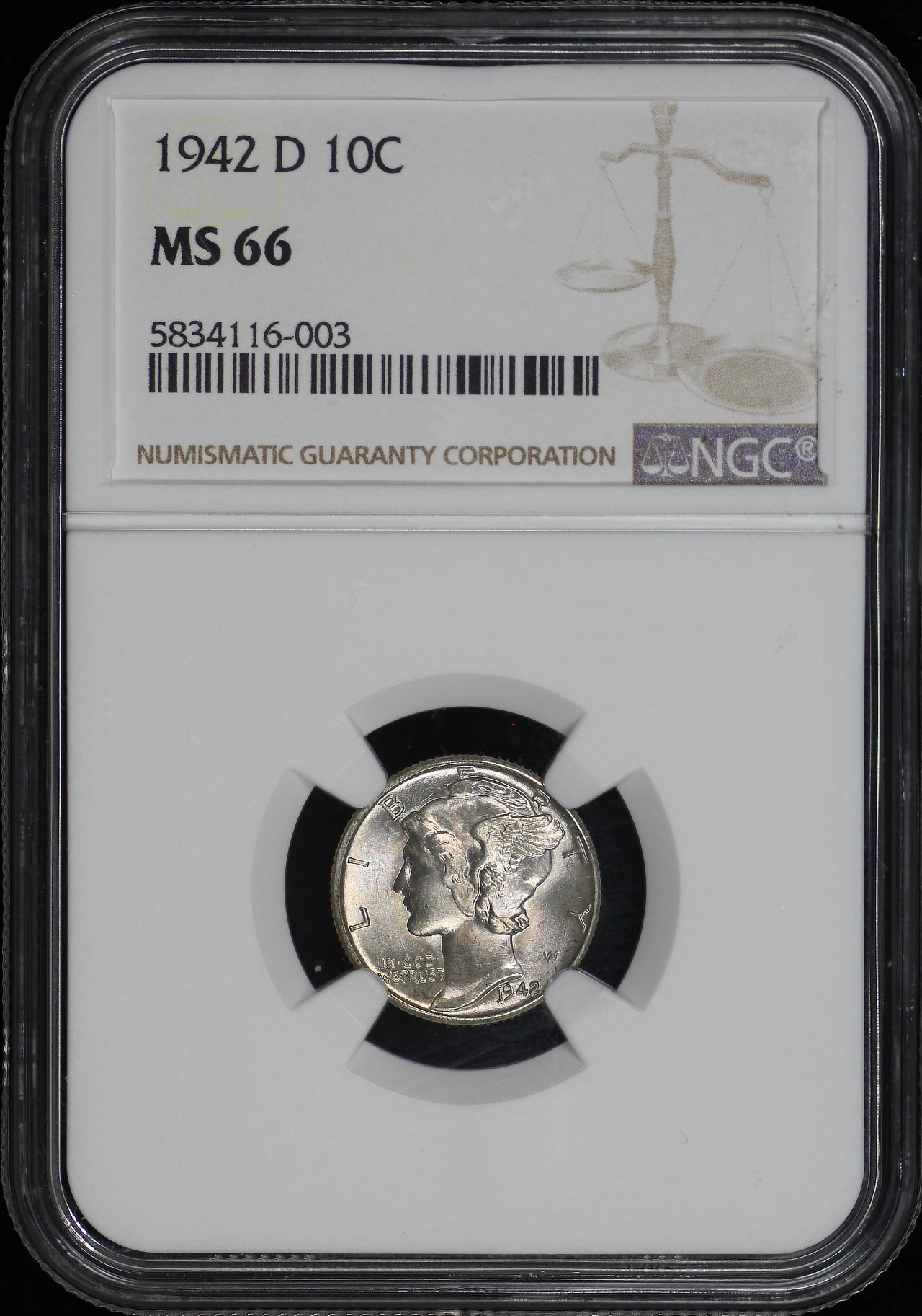 1942-D Mercury Dime NGC MS-66.