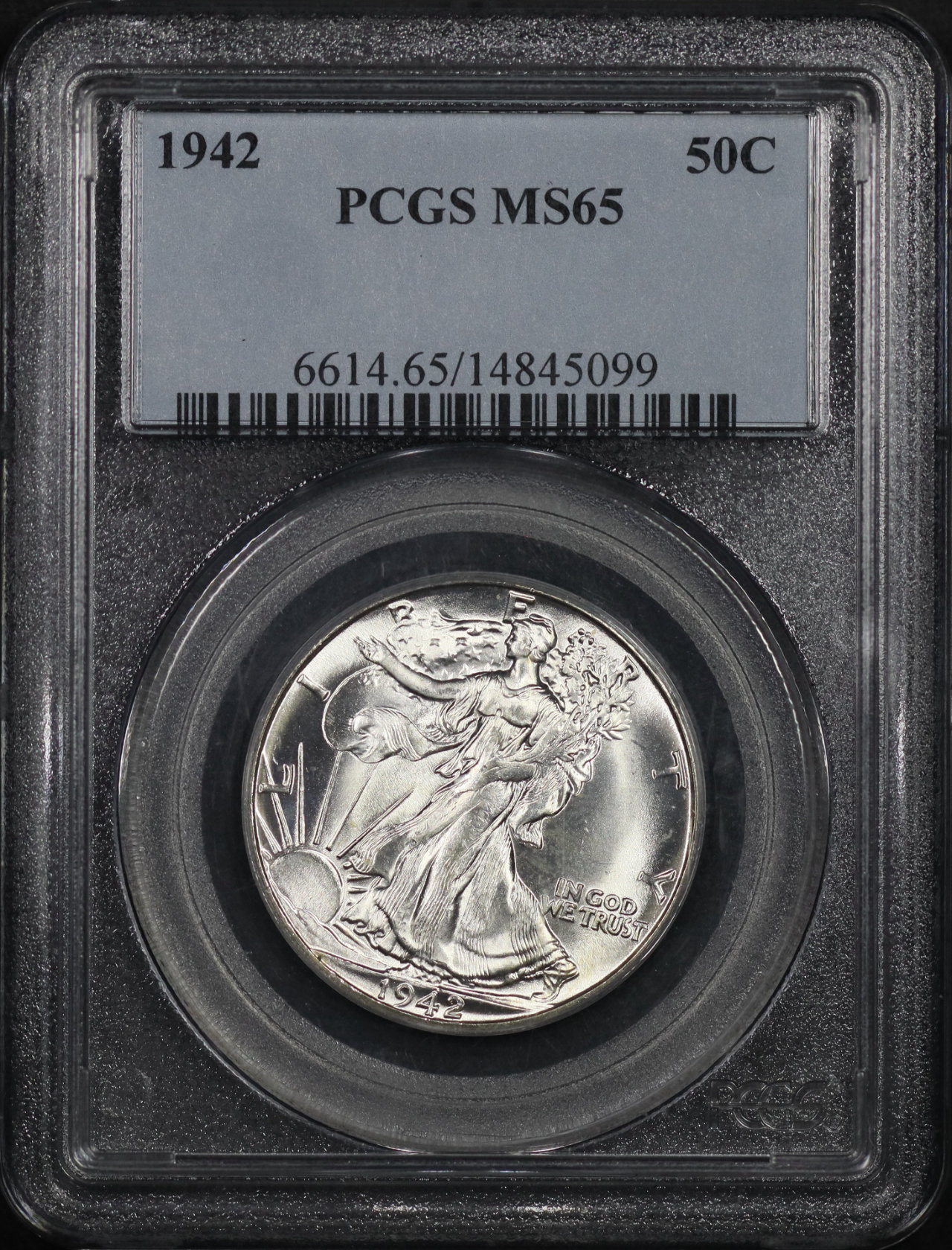 1942 Walking Liberty Half Dollar PCGS MS-65 designed by Adolph Alexander Weinman.