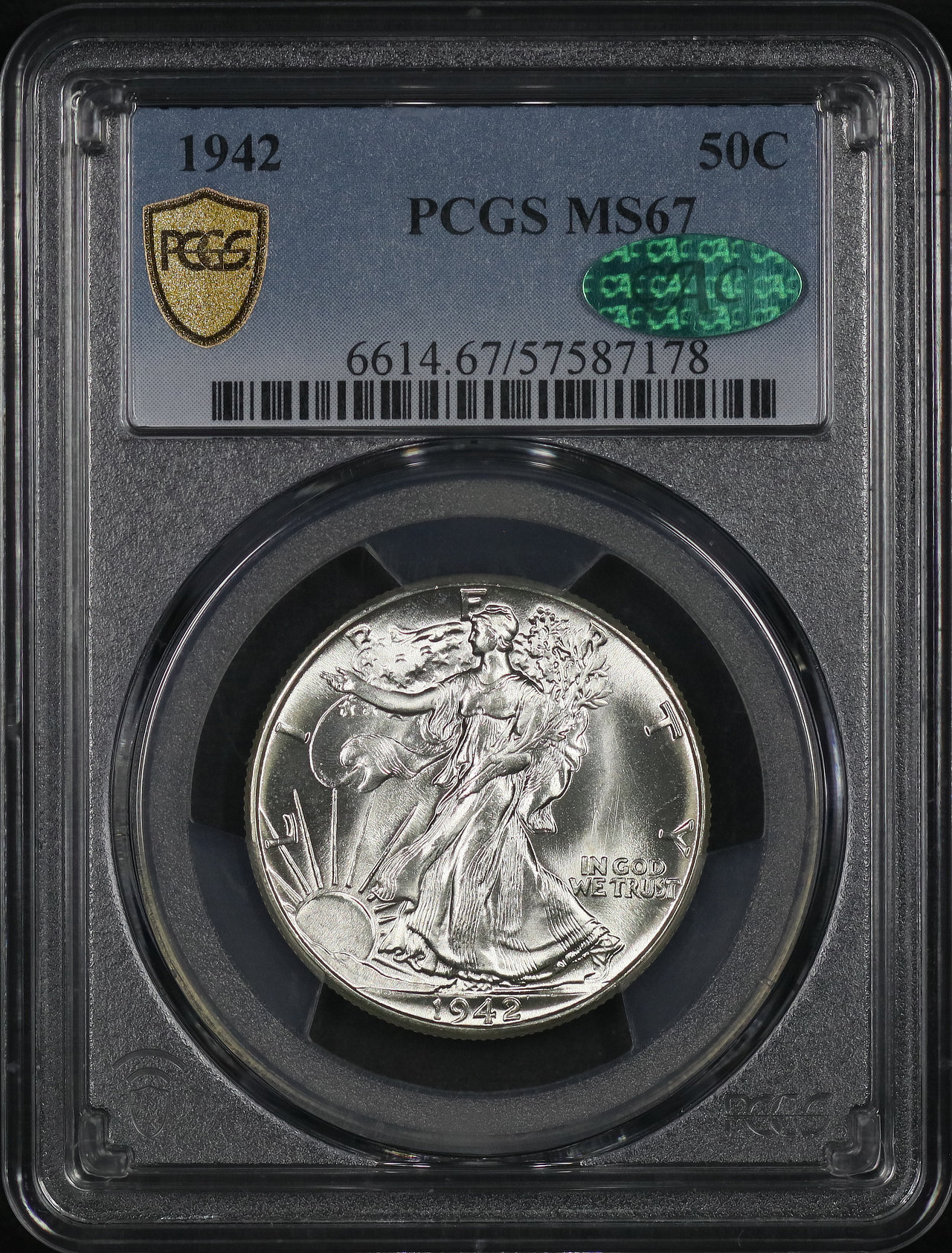 1942 Walking Liberty Half Dollar PCGS MS-67 CAC designed by Adolph Alexander Weinman.