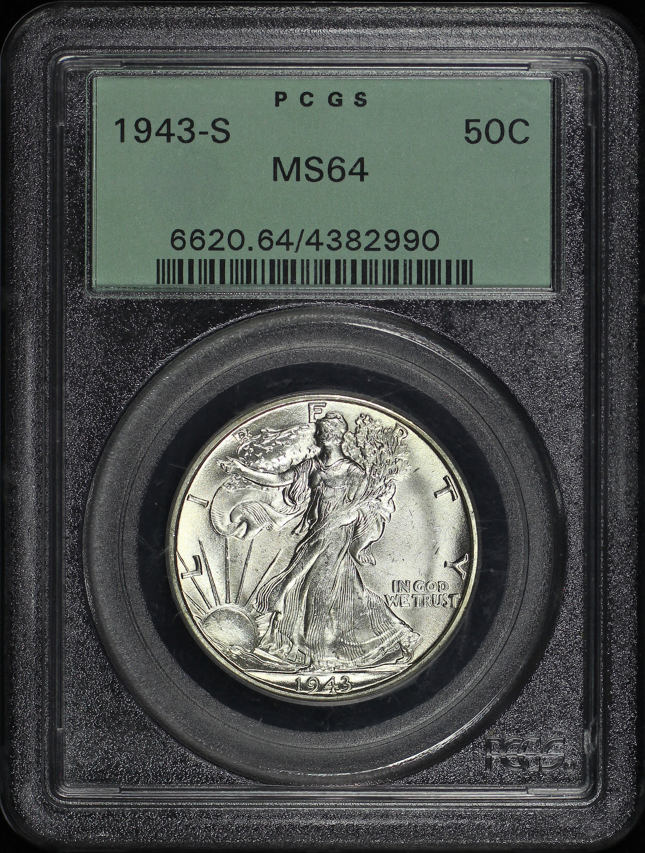 1943-S Walking Liberty Half Dollar PCGS MS-64 Old Green Holder designed by Adolph Alexander Weinman.