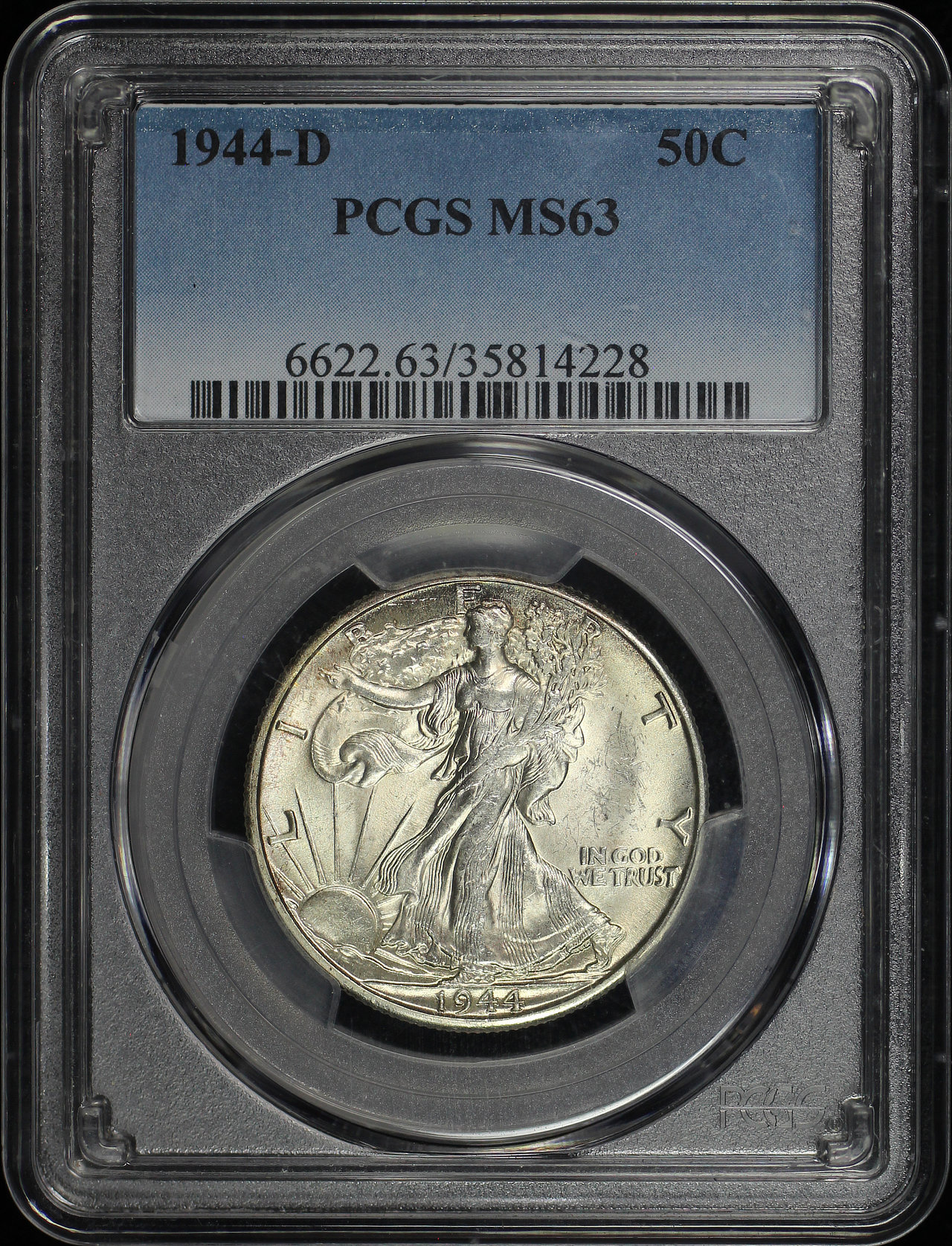 1944-D Walking Liberty Half Dollar PCGS MS-63 designed by Adolph Alexander Weinman.