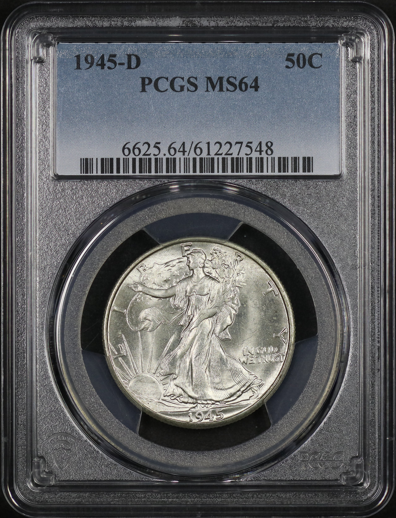 1945-D Walking Liberty Half Dollar PCGS MS-64 designed by Adolph Alexander Weinman.