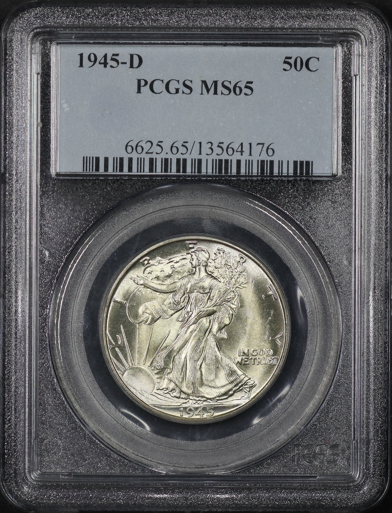 1945-D Walking Liberty Half Dollar PCGS MS-65 designed by Adolph Alexander Weinman.