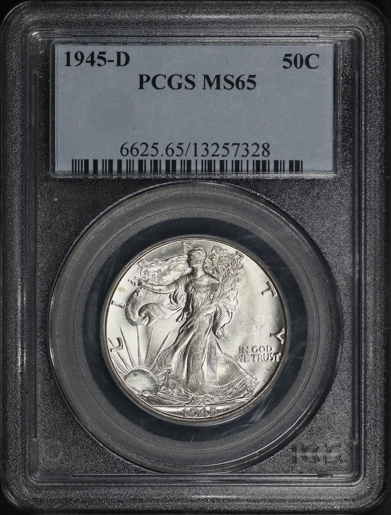 1945-D Walking Liberty Half Dollar PCGS MS-65 designed by Adolph Alexander Weinman.