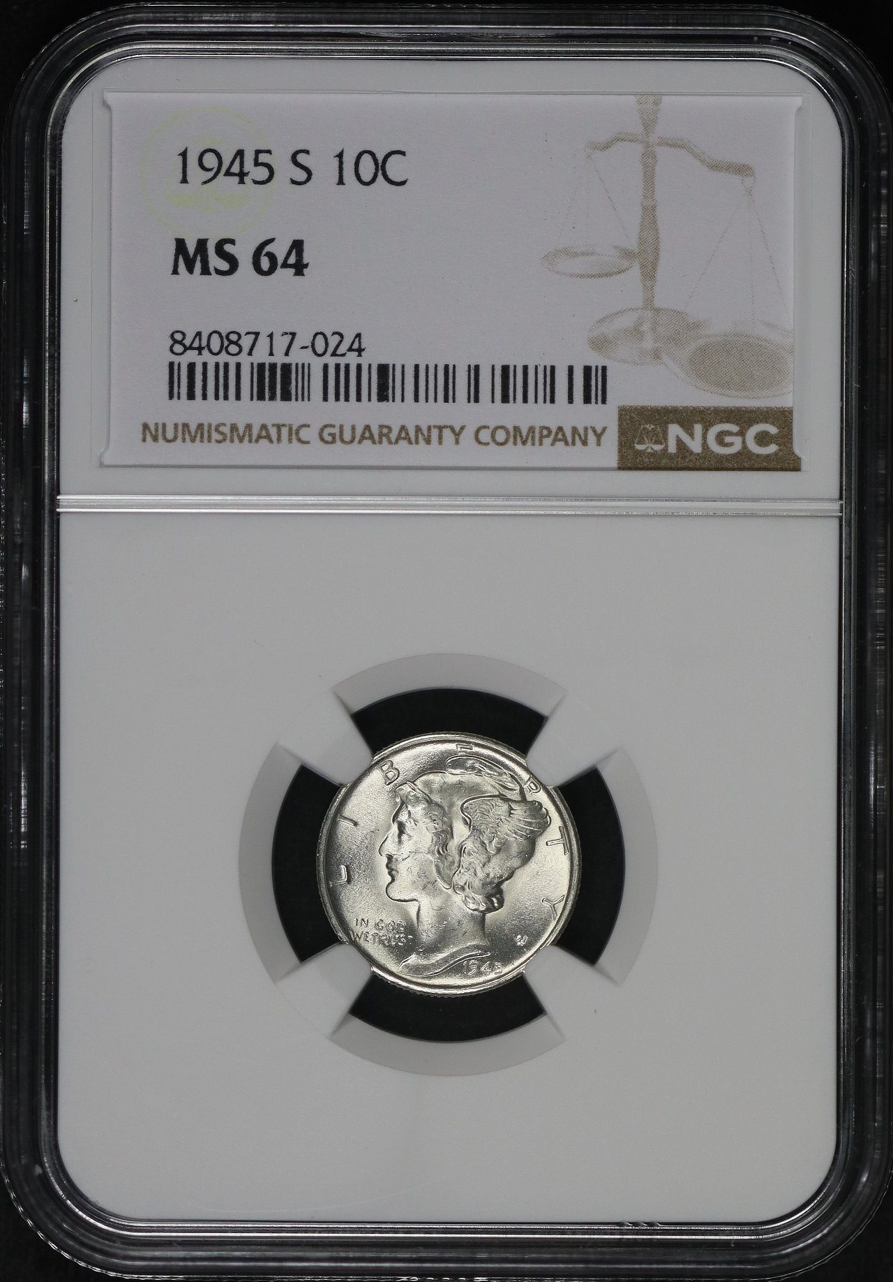 1945-S Mercury Dime NGC MS-64.