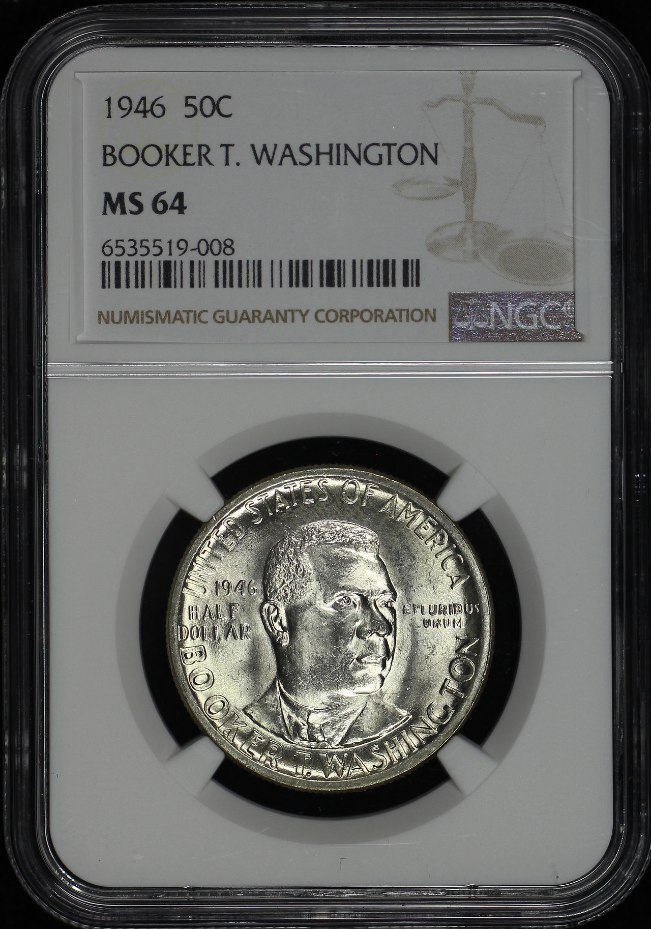 1946 50C Booker T. Washington Silver Commemorative NGC MS-64