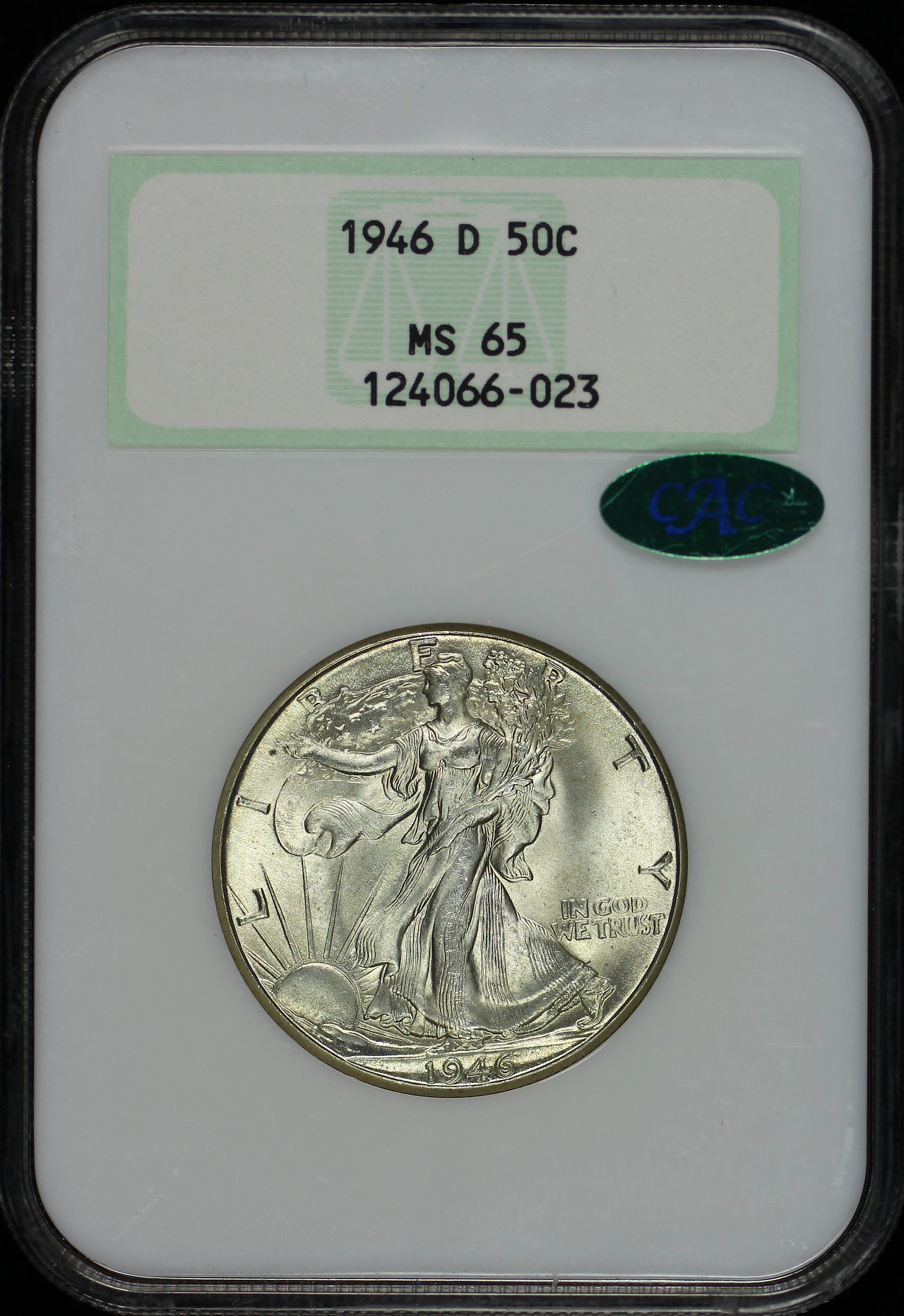 1946-D Walking Liberty Half Dollar NGC MS-65 CAC Old Fatty Holder.