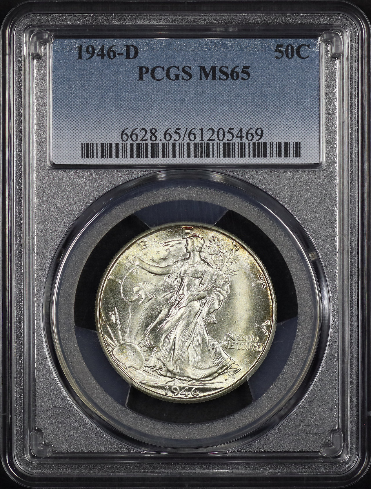 1946-D Walking Liberty Half Dollar PCGS MS-65 designed by Adolph Alexander Weinman.