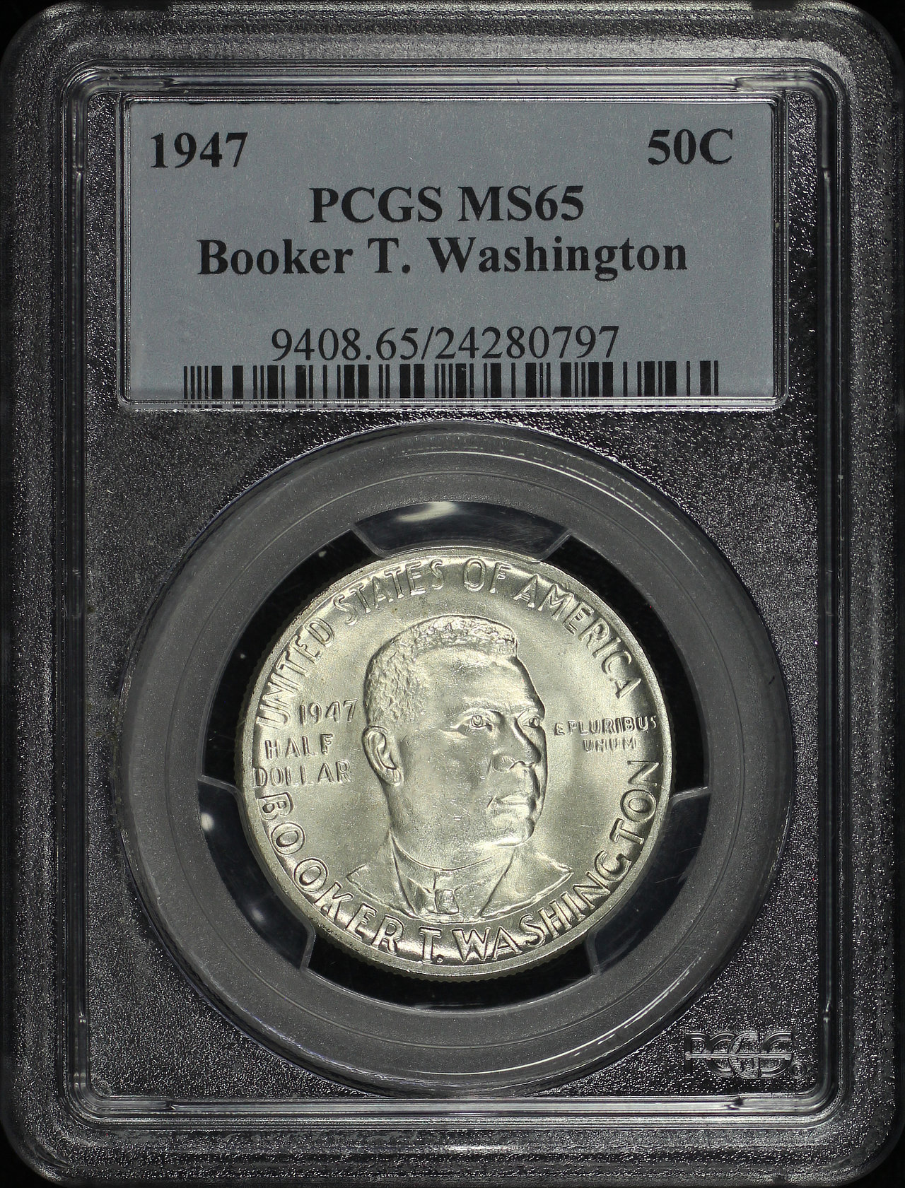 1947 50C Booker T. Washington Silver Commemorative PCGS MS-65 designed by Isaac Scott Hathaway.