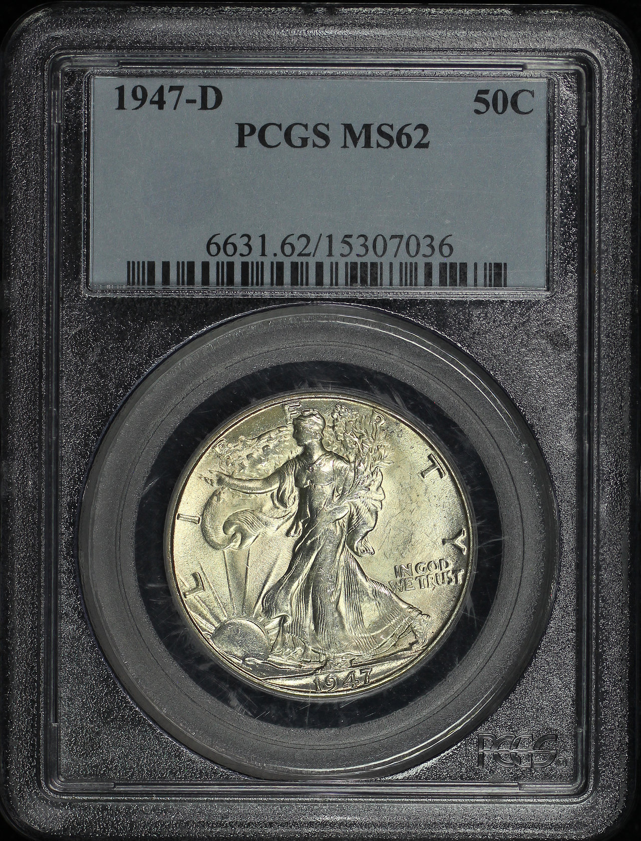 1947-D Walking Liberty Half Dollar PCGS MS-62 designed by Adolph Alexander Weinman.