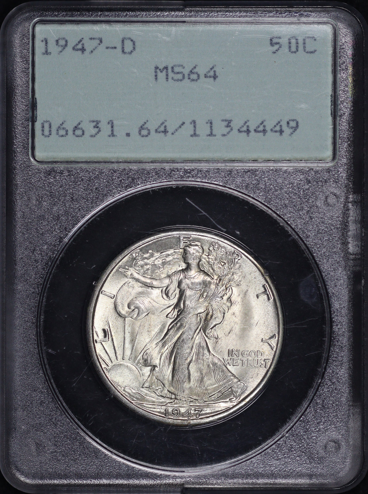 1947-D Walking Liberty Half Dollar PCGS MS-64 Old Green Rattle Holder