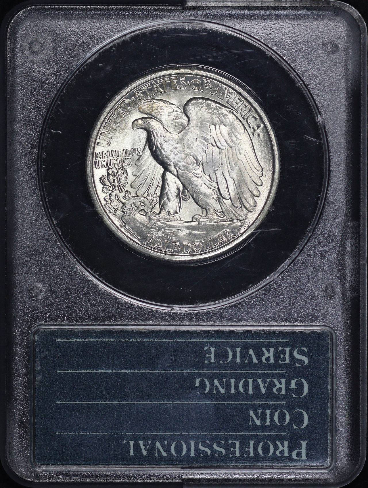 1947-D Walking Liberty Half Dollar PCGS MS-64 designed by Adolph Alexander Weinman. There are some very minor scuffs and scratches on the PCGS holder.