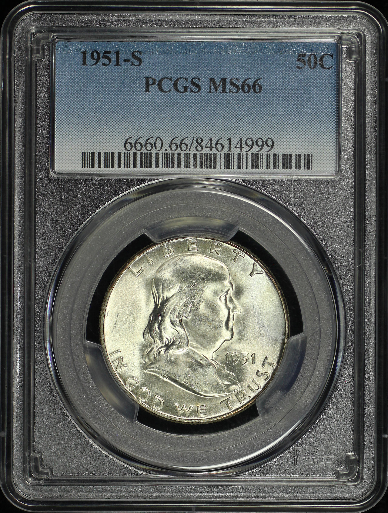 1951-S Franklin Half Dollar PCGS MS-66 designed by John R. Sinnock and John Frederick Lewis.