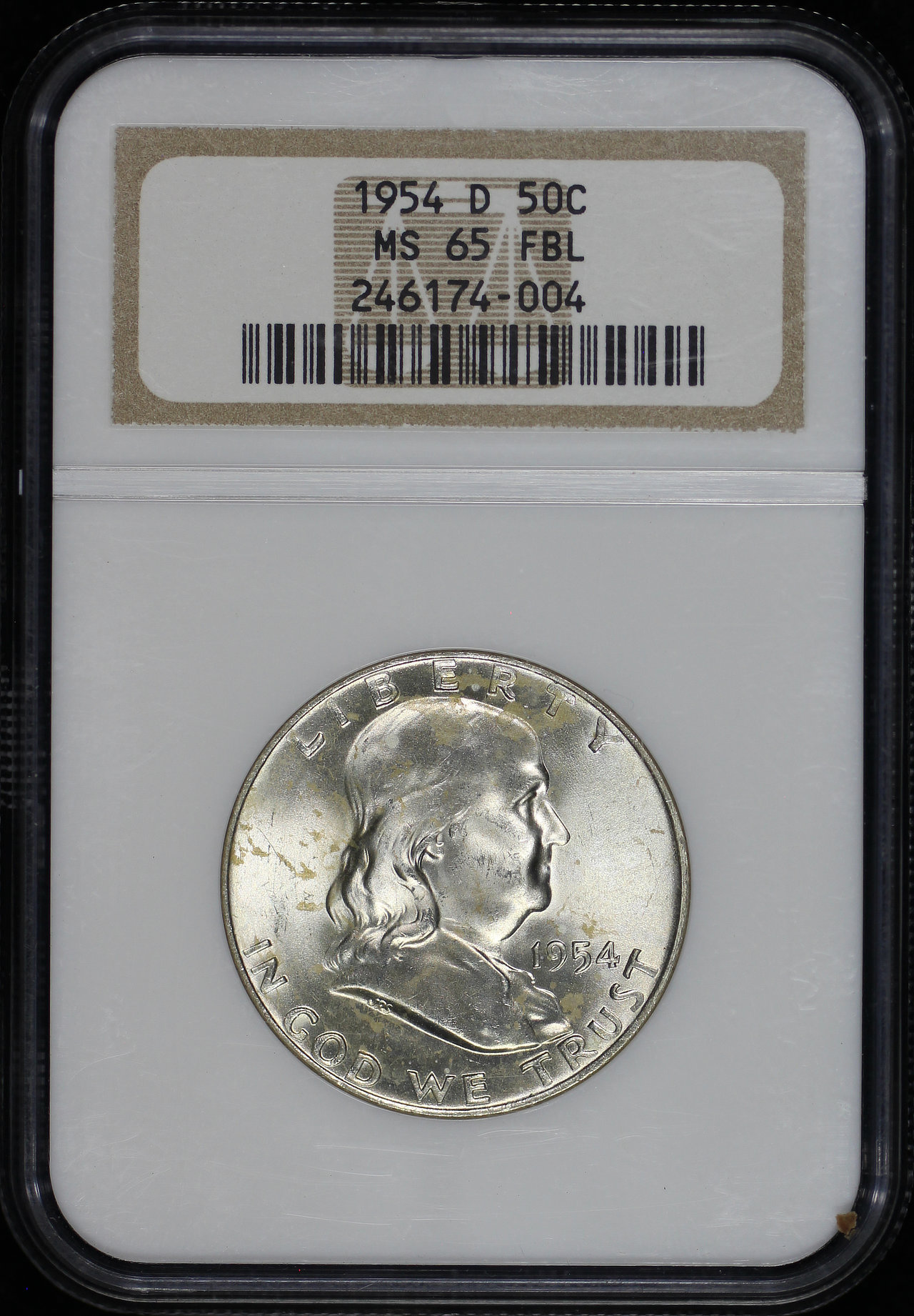 1954-D Franklin Half Dollar NGC MS-65 FBL.