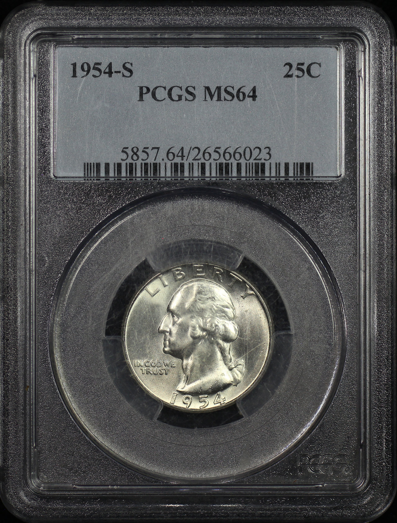 1954-S Washington Quarter PCGS MS-64 designed by John Flanagan.