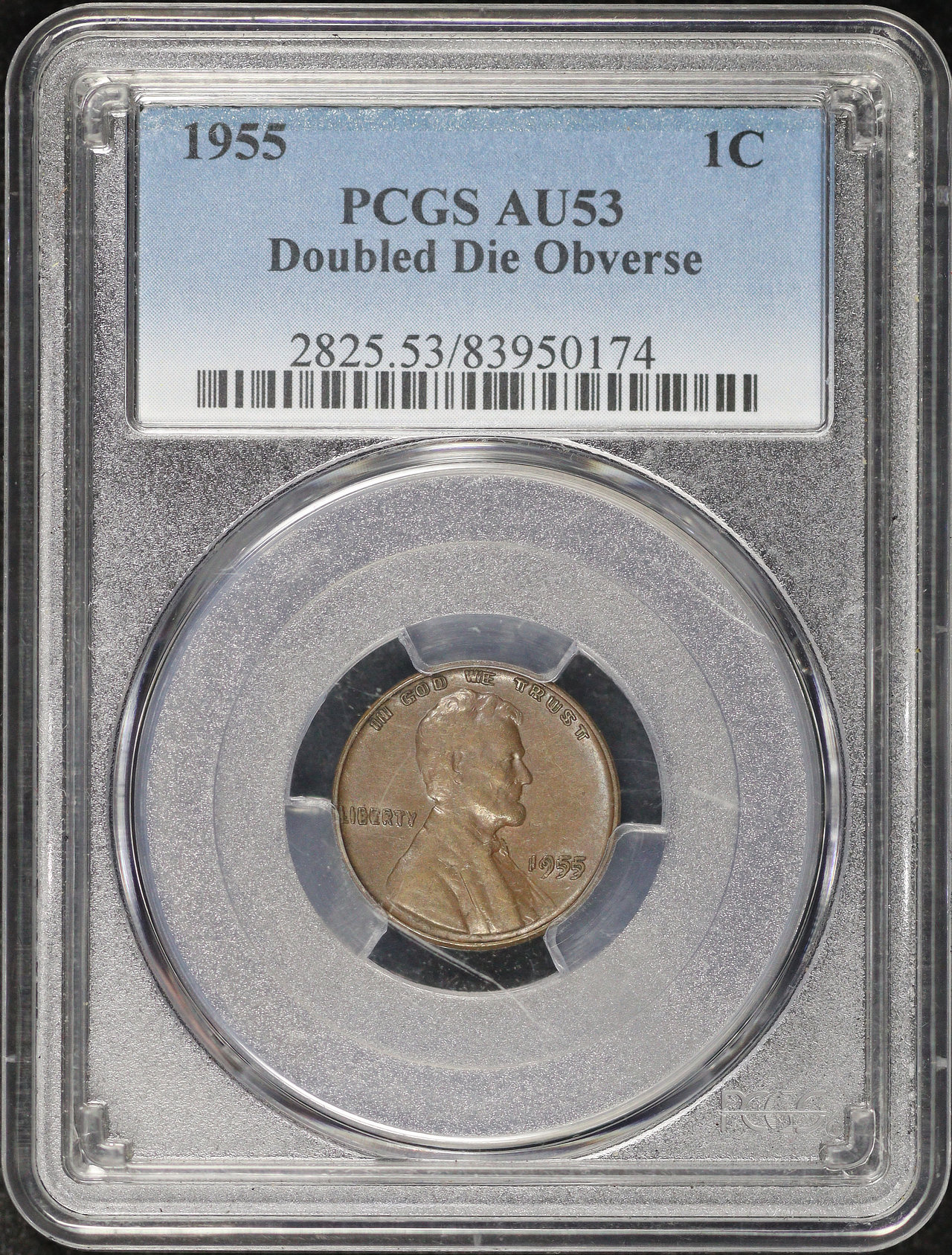 1955 Doubled Die Obverse Lincoln Cent Wheat Reverse PCGS AU-53
