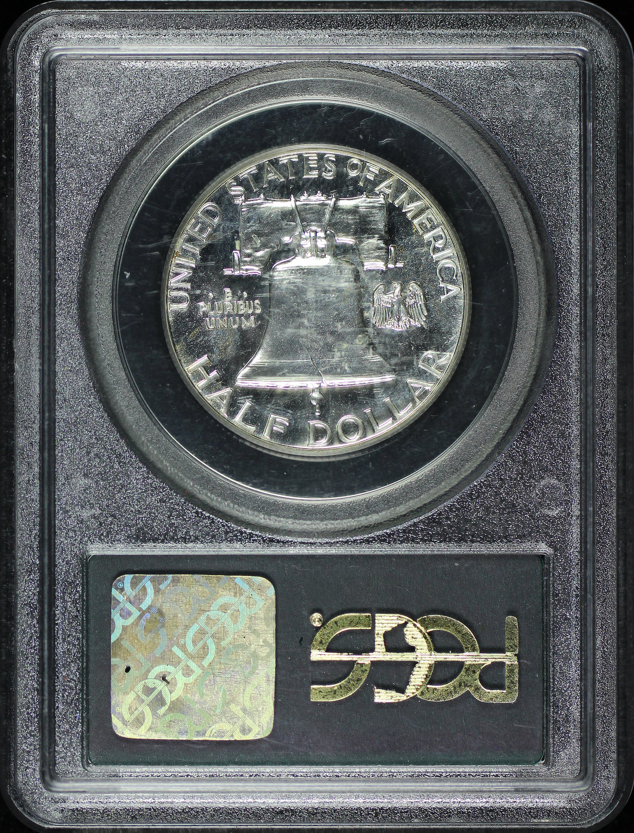 1957 Franklin Half Dollar PCGS PR-65 Old Green Holder designed by John R. Sinnock and John Frederick Lewis.