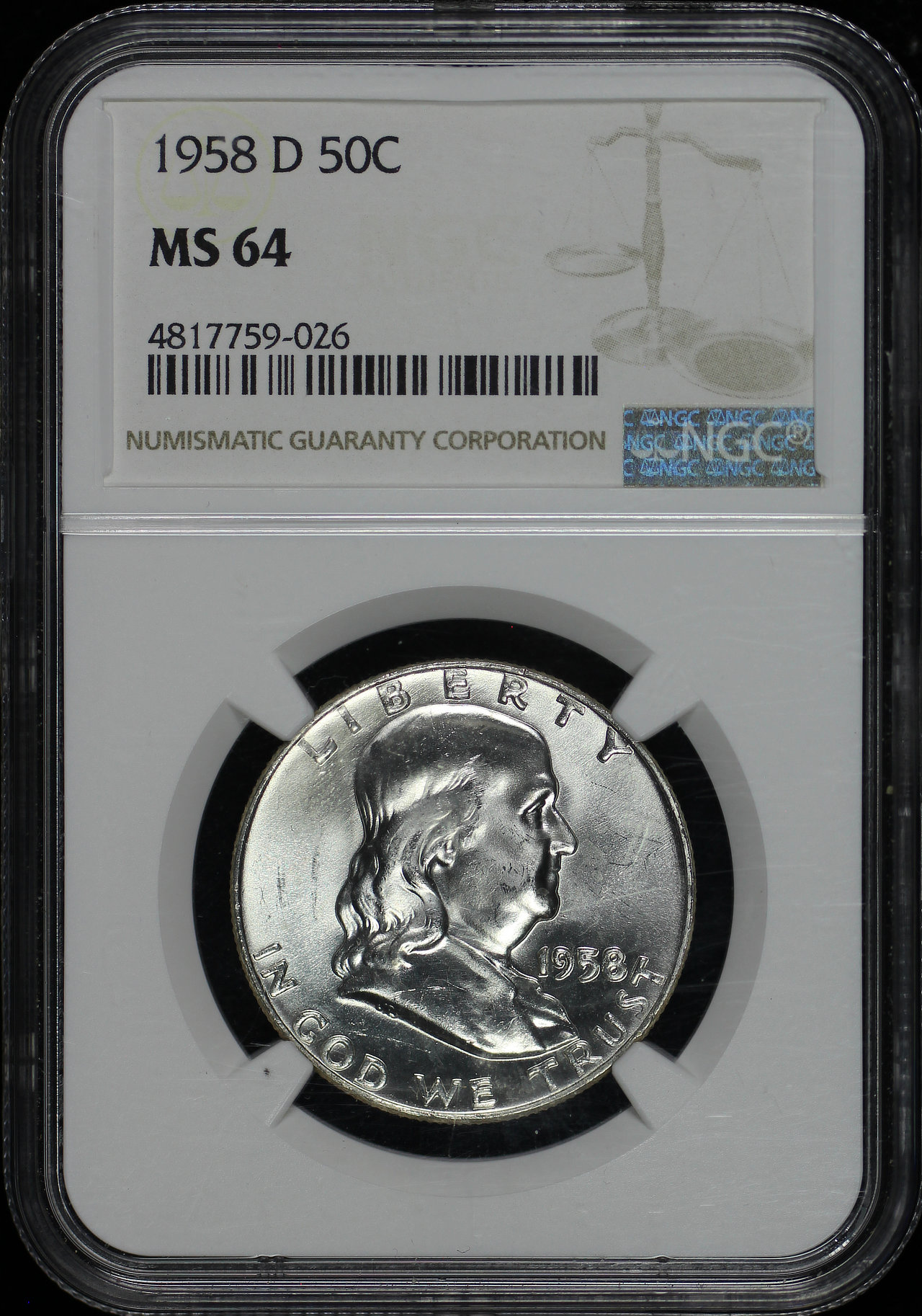 1958-D Franklin Half Dollar NGC MS-64.