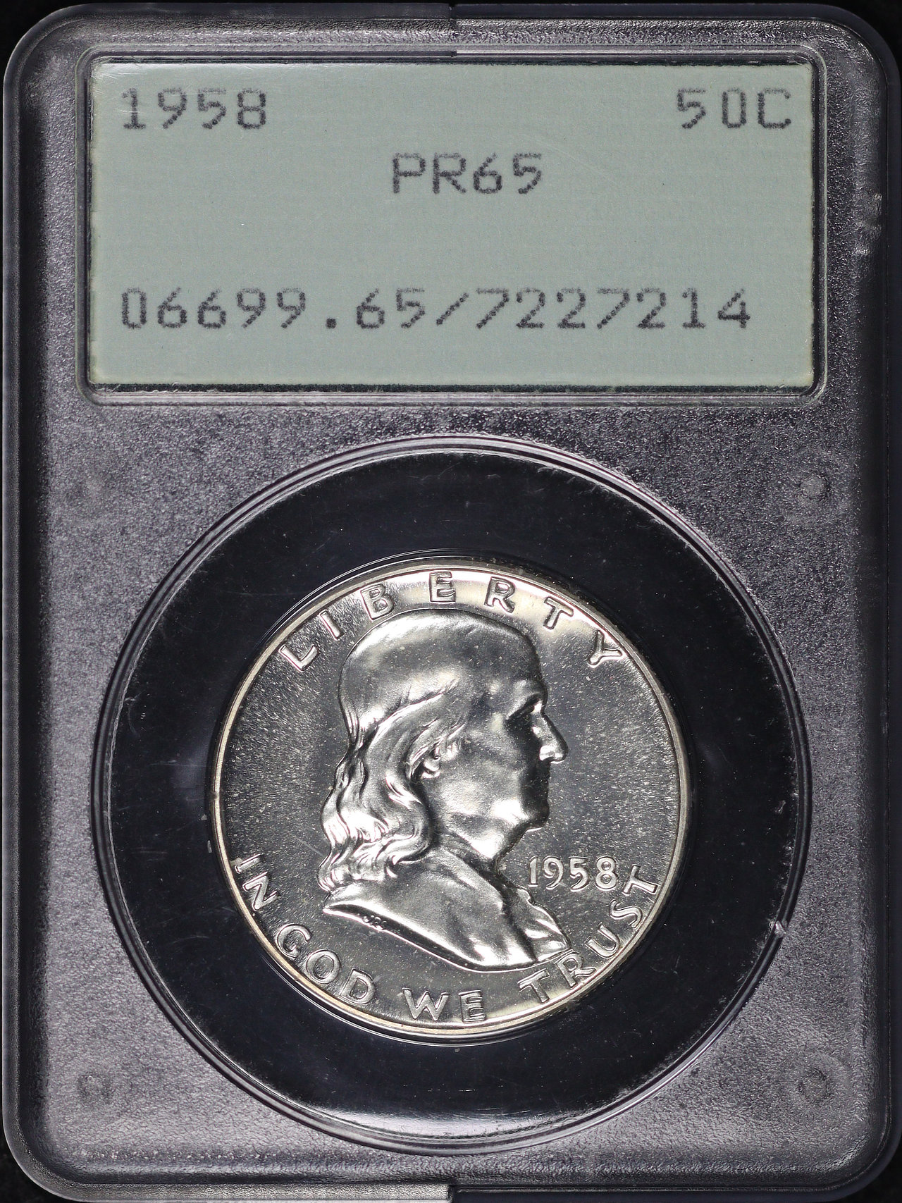 1958 Franklin Half Dollar PCGS PR-65 Old Green Rattle Holder