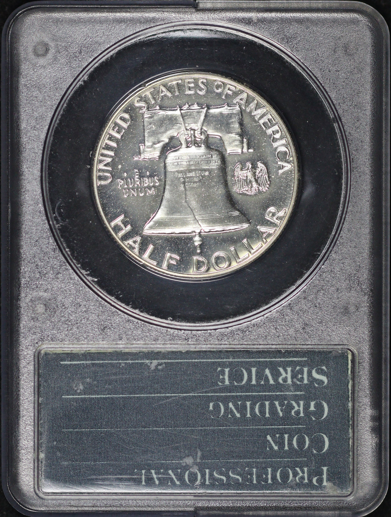 1958 Franklin Half Dollar PCGS PR-65 designed by John R. Sinnock and John Frederick Lewis. There are some minor scuffs and scratches on the PCGS holder.