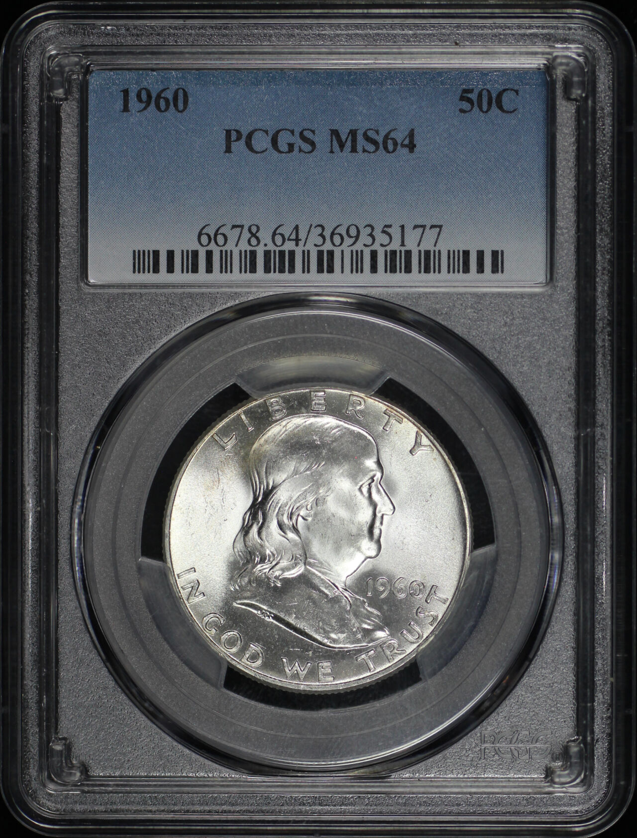 1960 Franklin Half Dollar PCGS MS-64 designed by John R. Sinnock and John Frederick Lewis.