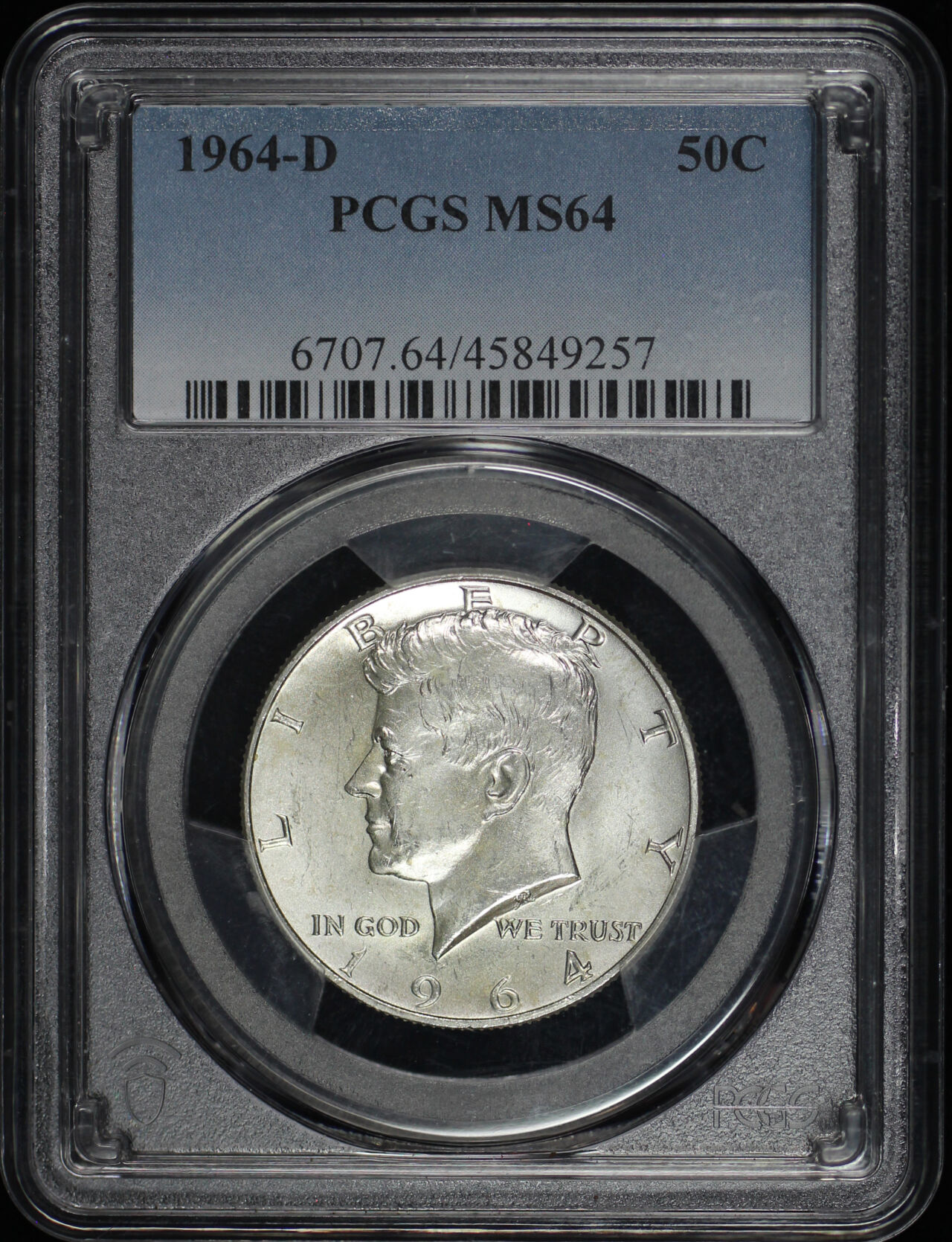 1964-D Kennedy Half Dollar PCGS MS-64 designed by Roberts and Frank Gasparro.