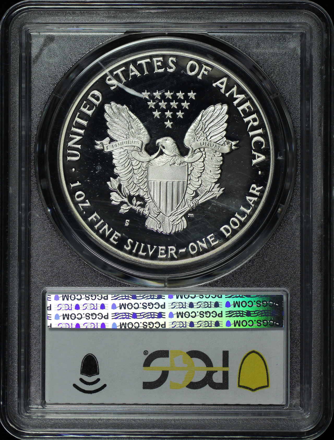 1986-S Silver Eagle PCGS PR-69 DCAM designed by Adolph A. Weinman and John Mercanti.