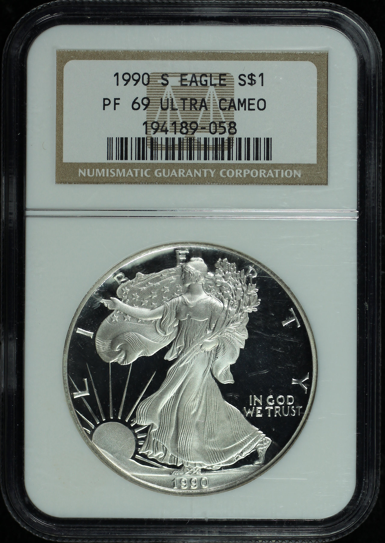 1990-S Silver Eagle NGC PF-69 UC.