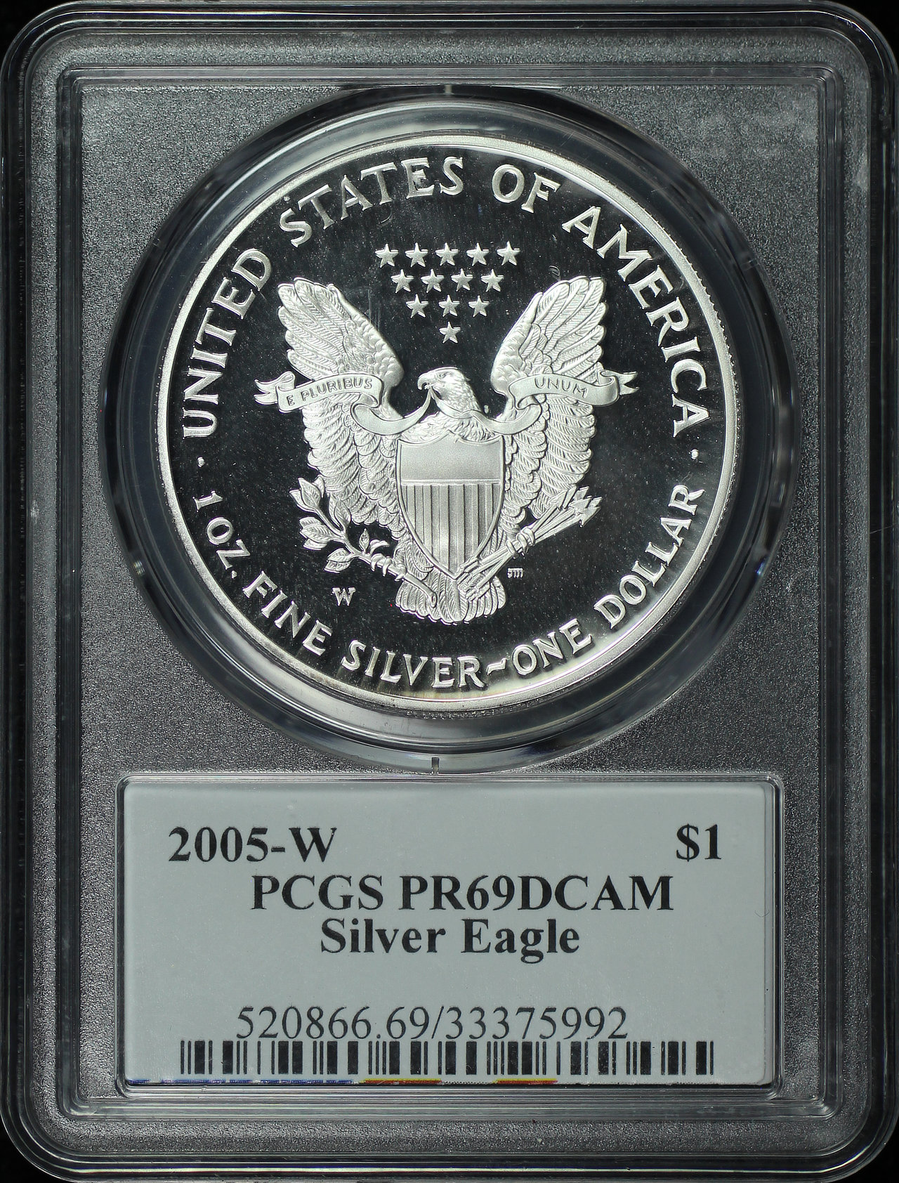 2005-W Silver Eagle PCGS PR-69 DCAM Edmund C. Moy Signature Label.