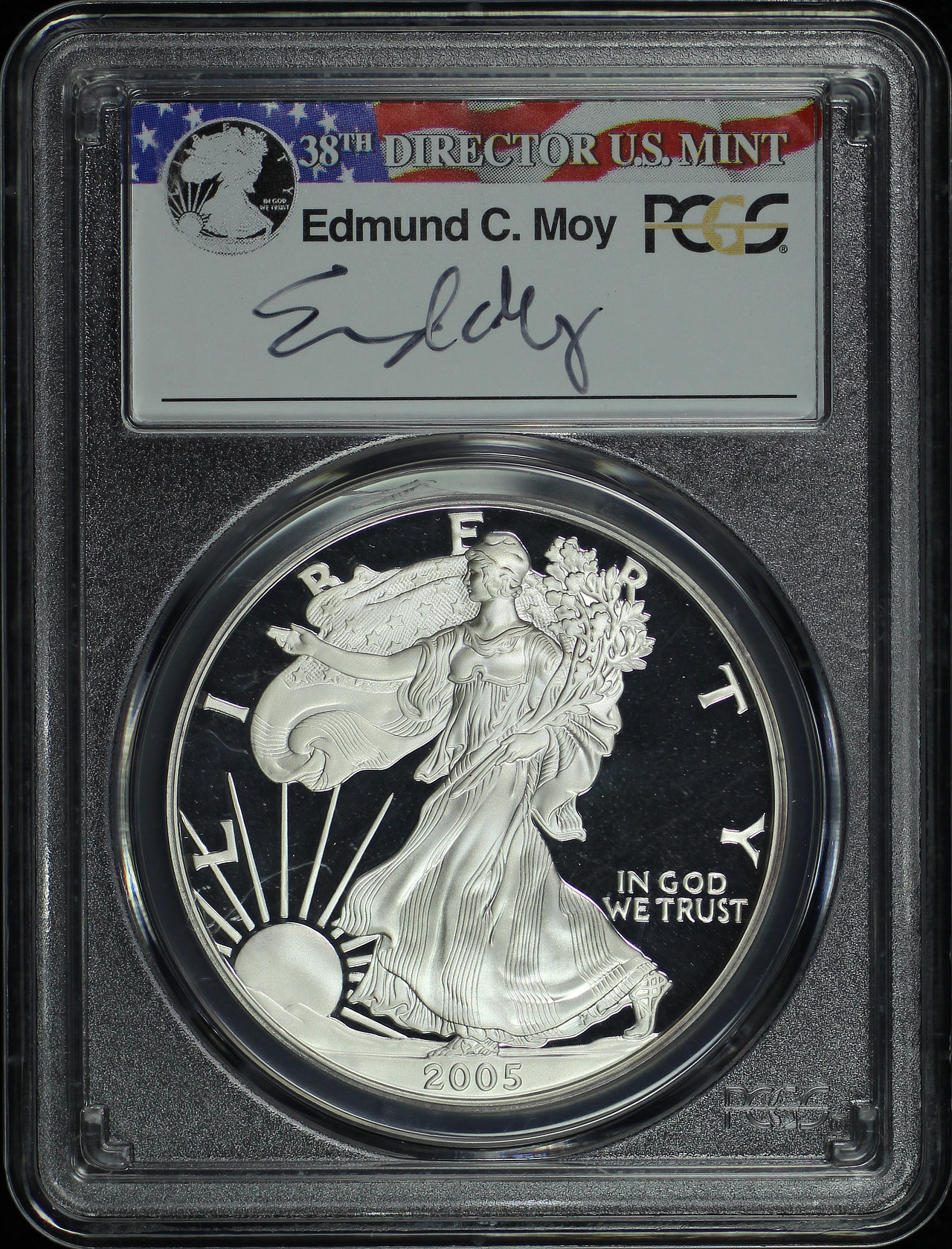 2005-W Silver Eagle PCGS PR-69 DCAM Edmund C. Moy Signature Label