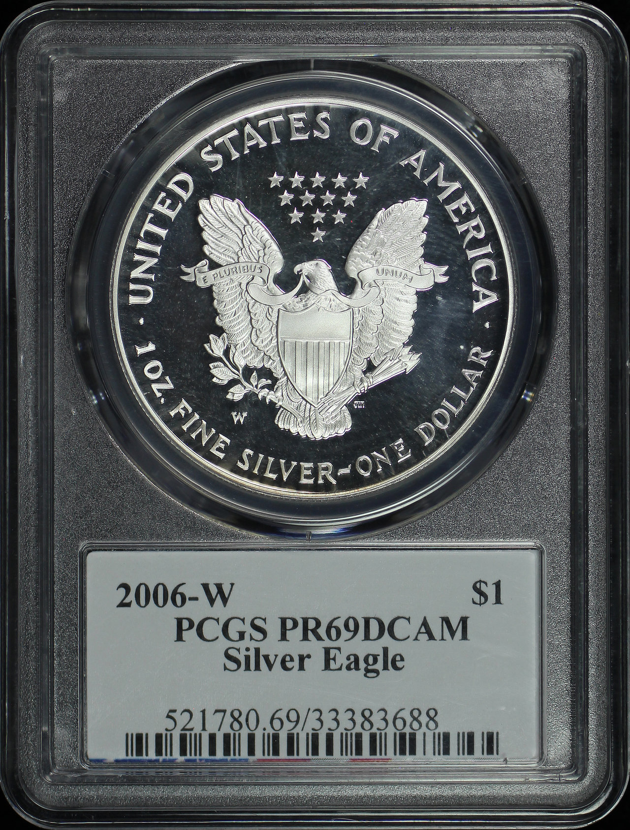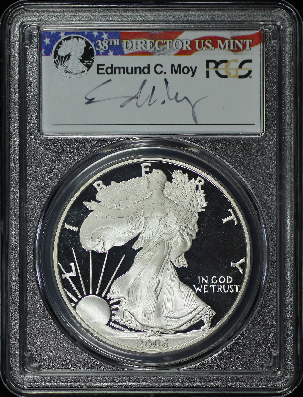 2006-W Silver Eagle PCGS PR-69 DCAM Edmund C. Moy Signature Label.