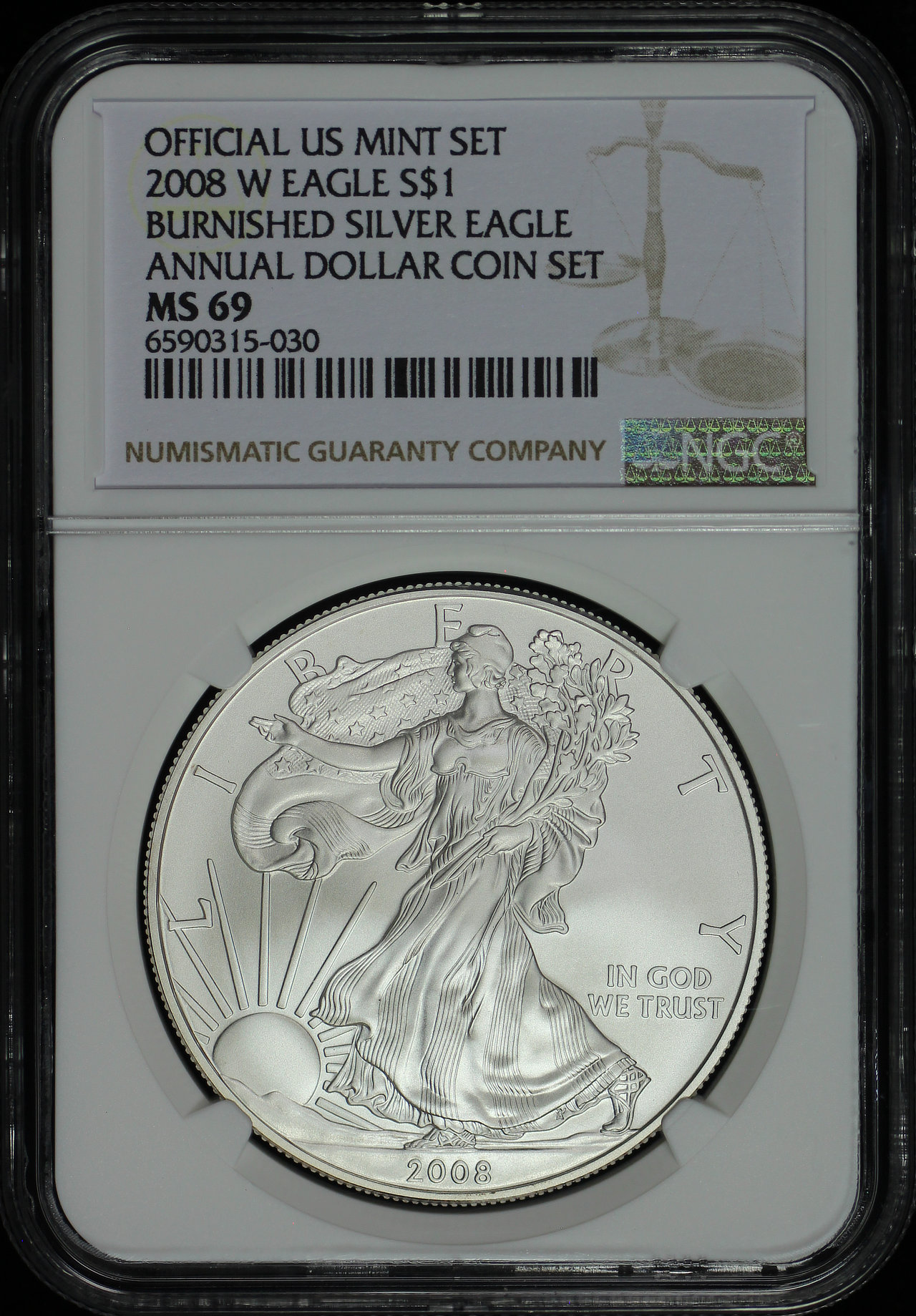 2008-W Burnished Silver Eagle NGC MS-69