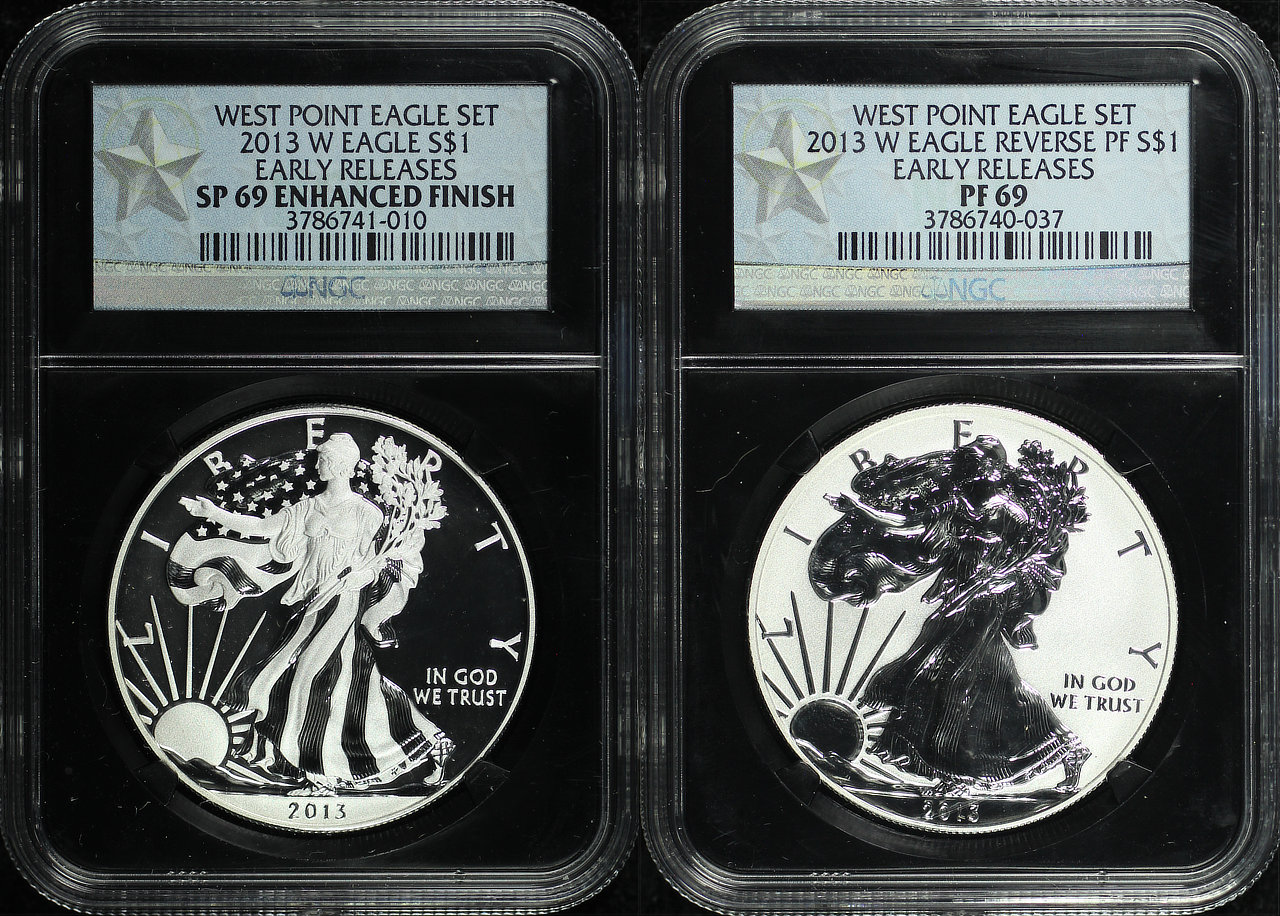 2013-W American Silver Eagle West Point Eagle Set NGC SP-69 Enhanced Finish Early Release & PF-69 Reverse Proof.