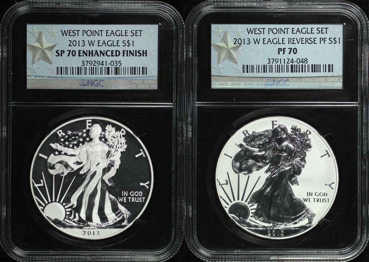 2013-W American Silver Eagle West Point Eagle Set NGC SP-70 Enhanced Finish & PF-70 Reverse Proof.