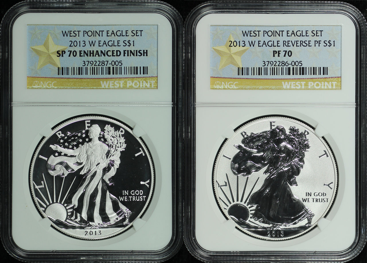 2013-W American Silver Eagle West Point Eagle Set NGC SP-70 Enhanced Finish & PF-70 Reverse Proof.