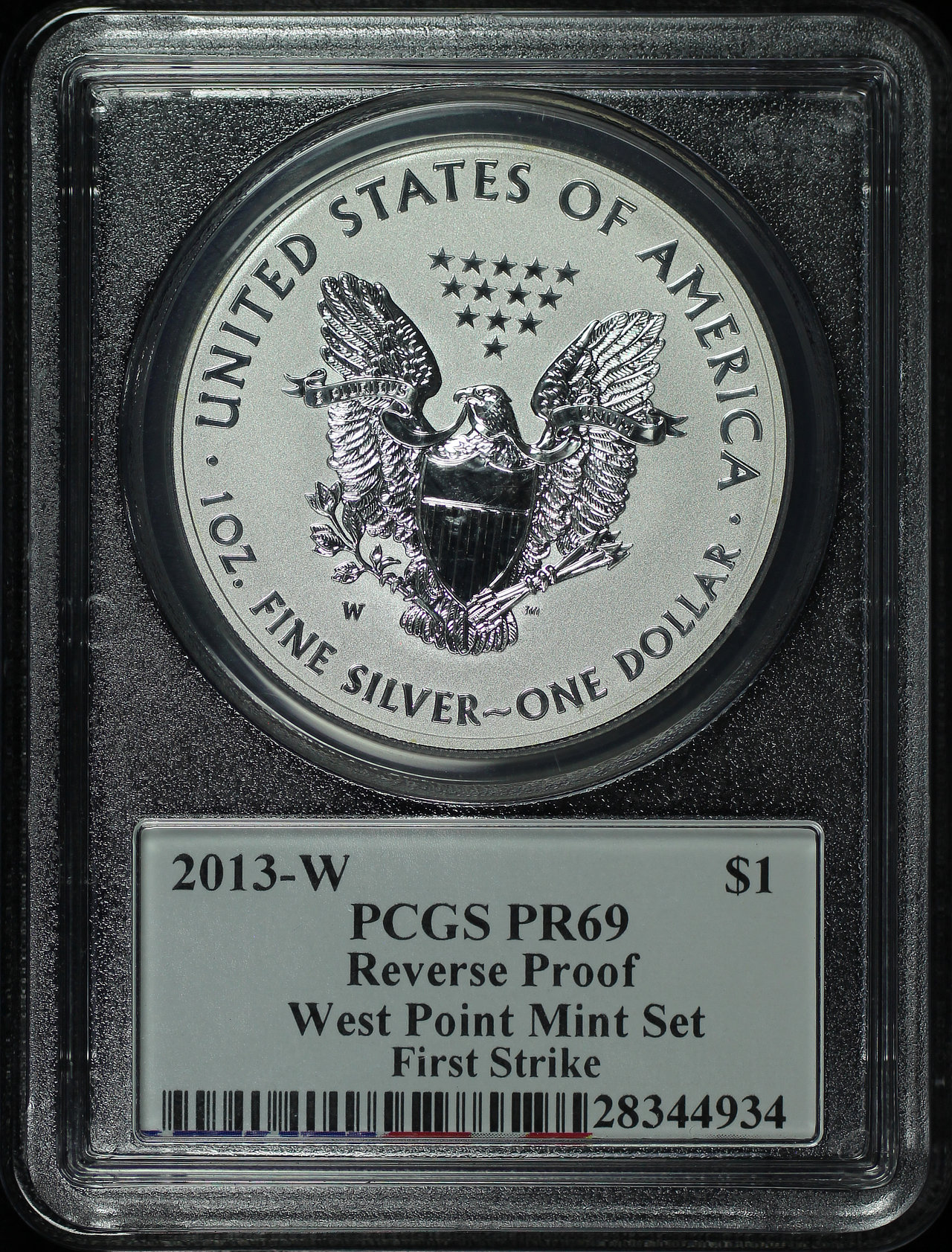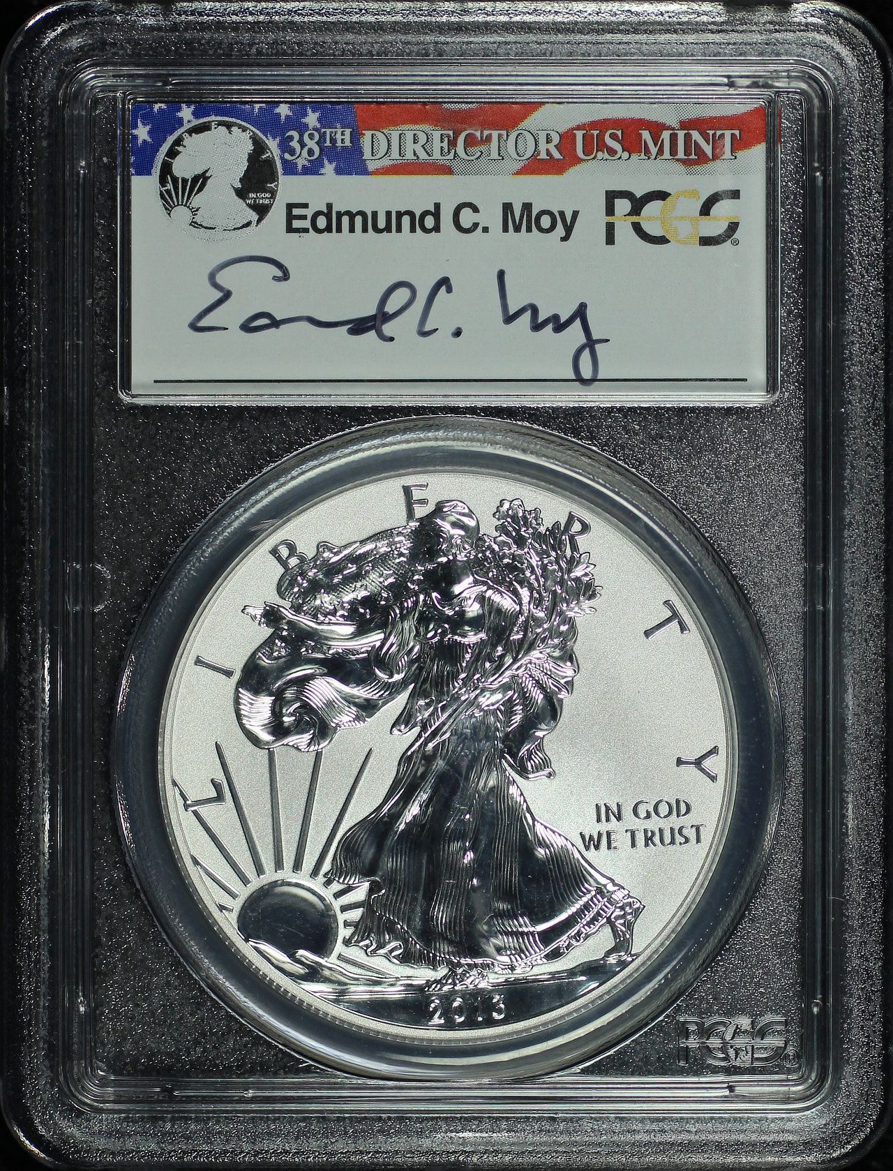 2013-W Silver Eagle PCGS PR-69 Reverse Proof First Strike Edmund C. Moy Signature Label.