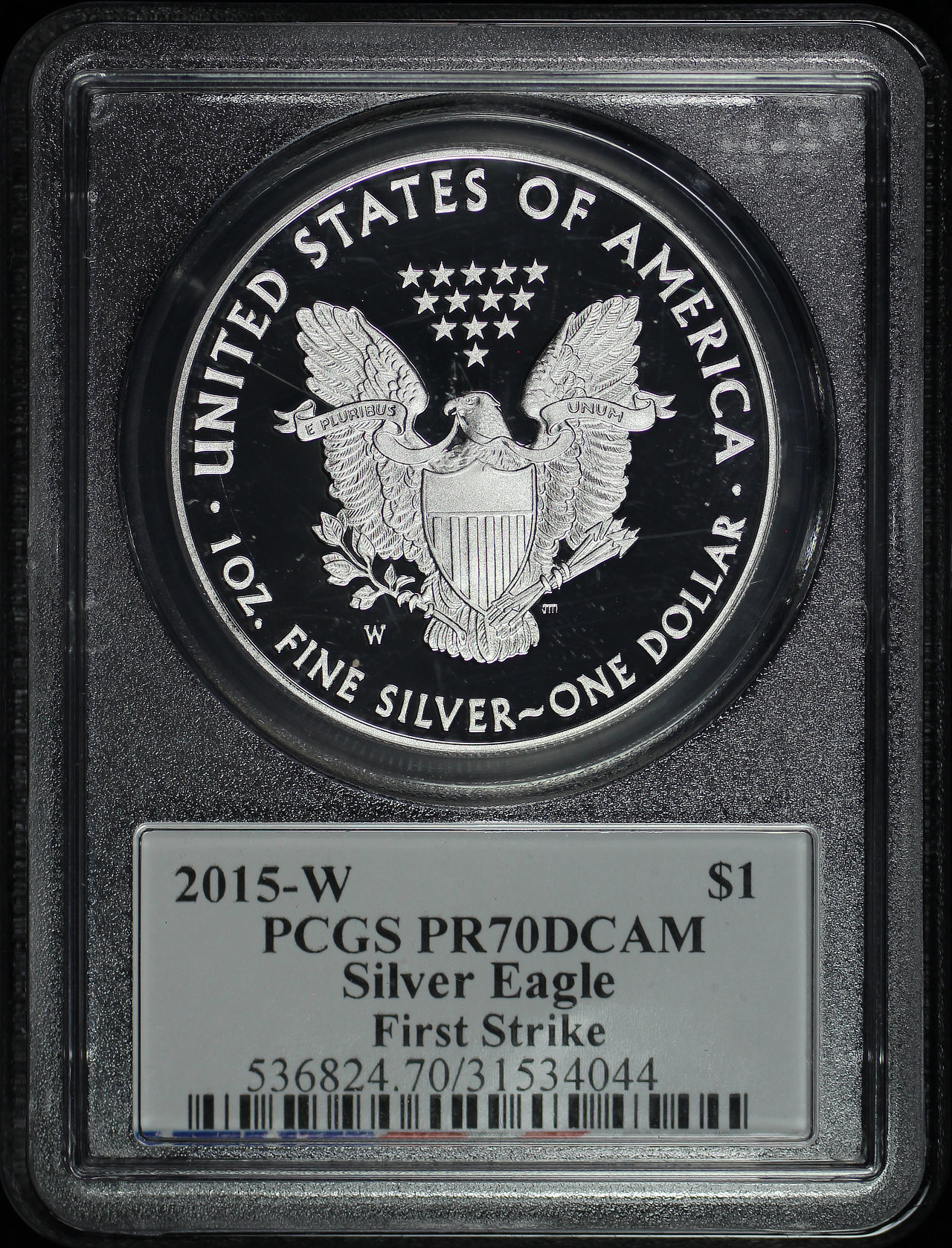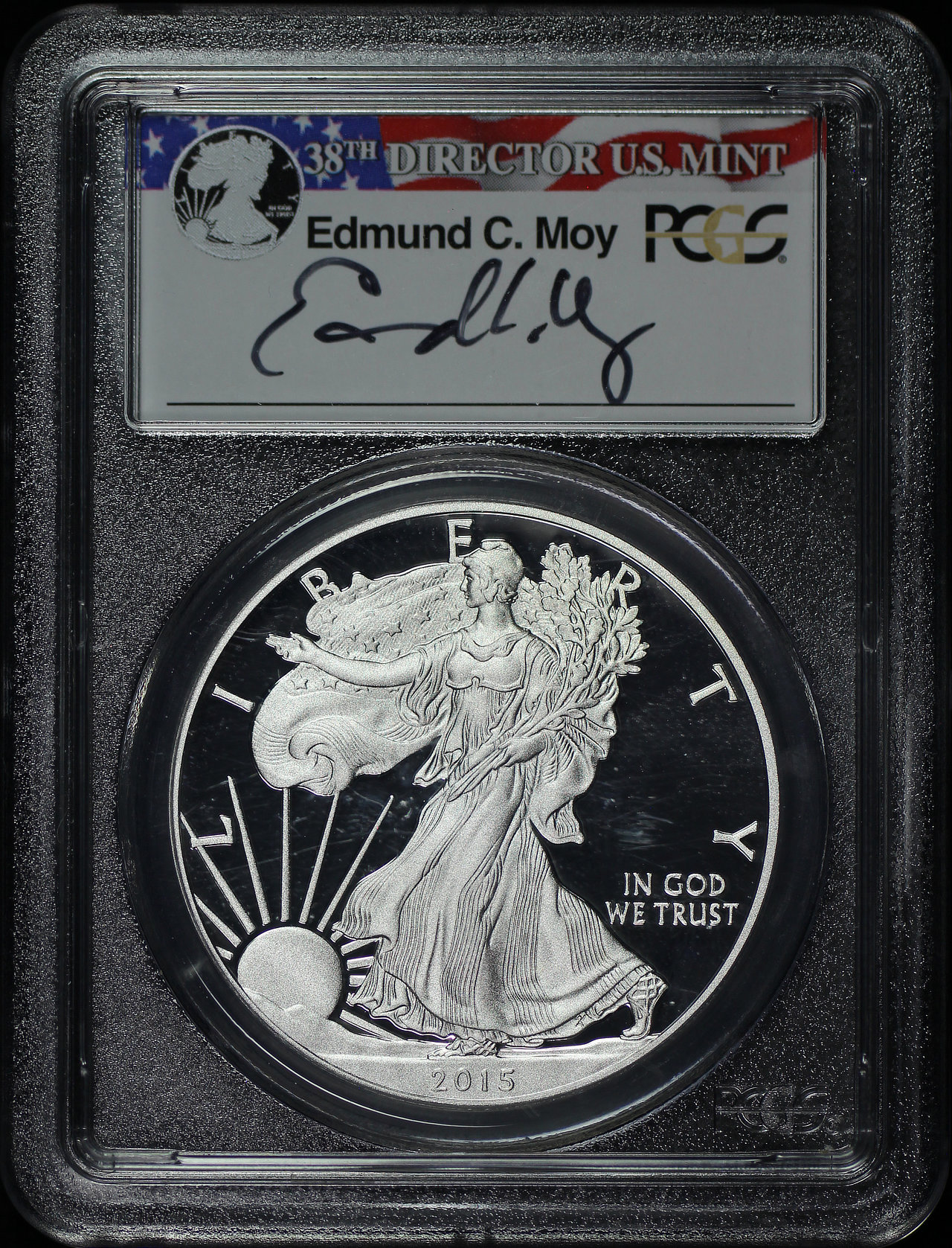 2015-W Silver Eagle PCGS PR-70 DCAM First Strike Edmund C. Moy Signature Label.