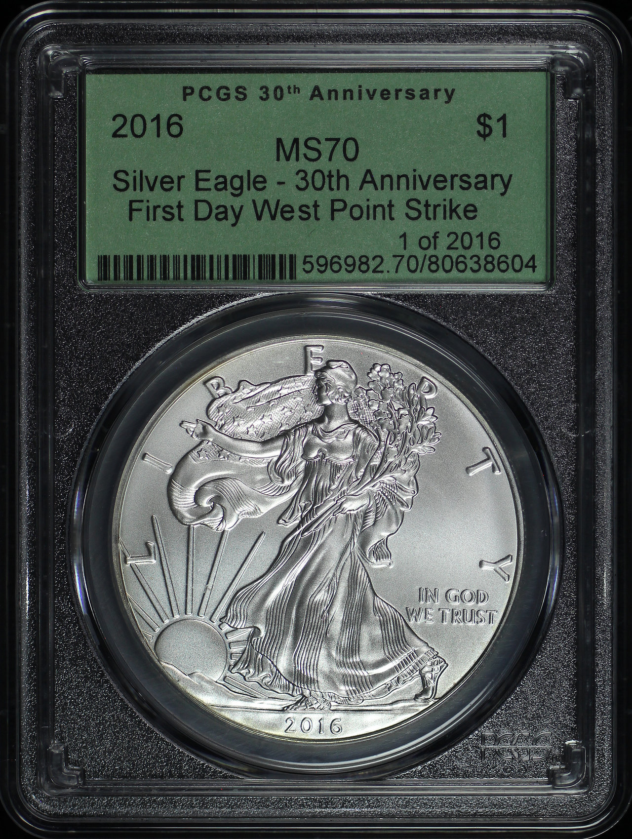 2016 Silver Eagle 30th Anniversary PCGS MS-70 First Day West Point Strike 1 of 2016.